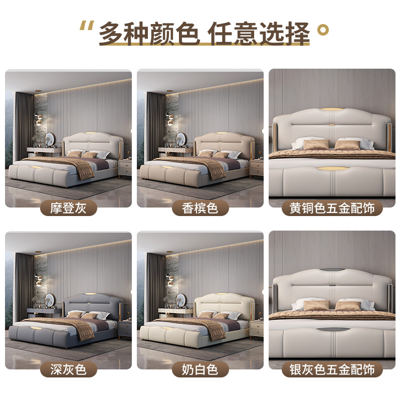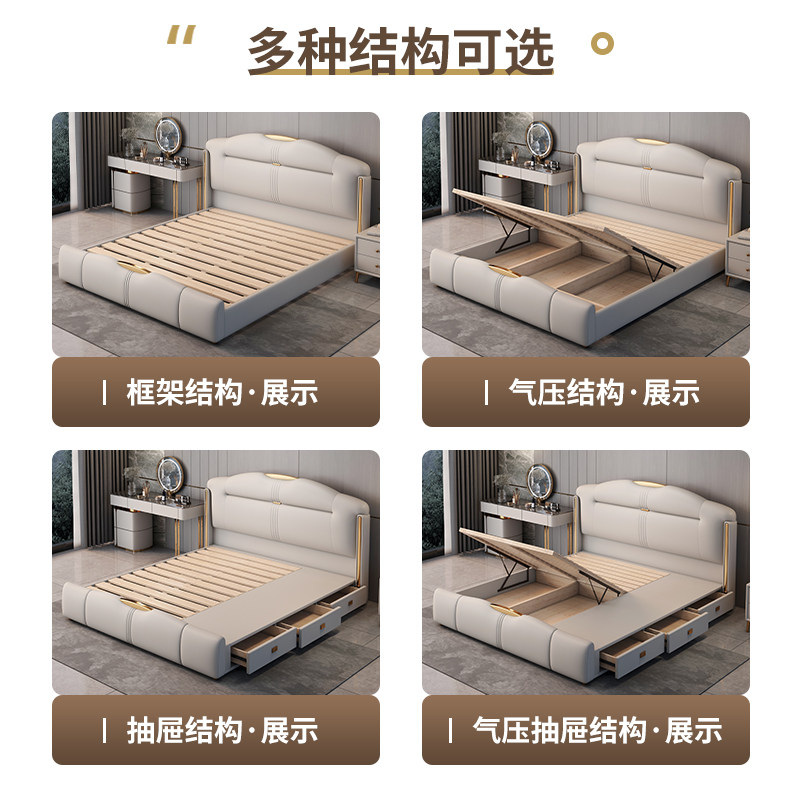 尚品宅配轻奢真皮床现代简约主卧1.8米双人床2米大床储物高端意式
