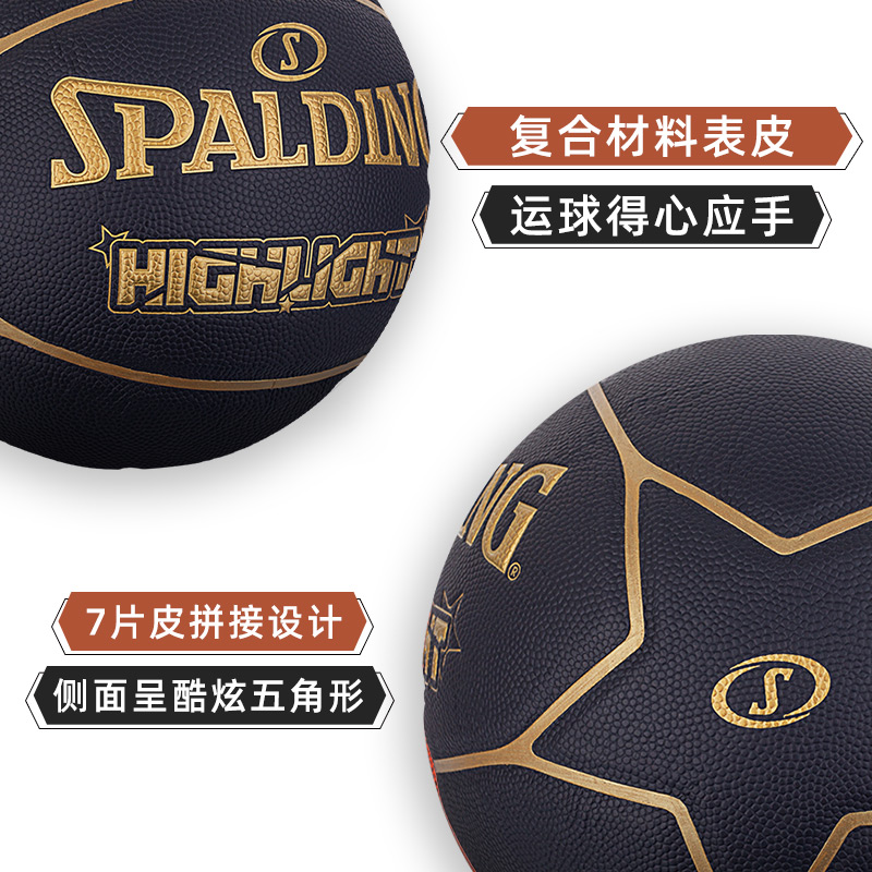 Spalding斯伯丁官方黑金撞色7号PU标准篮球室内外比赛专业76-869Y