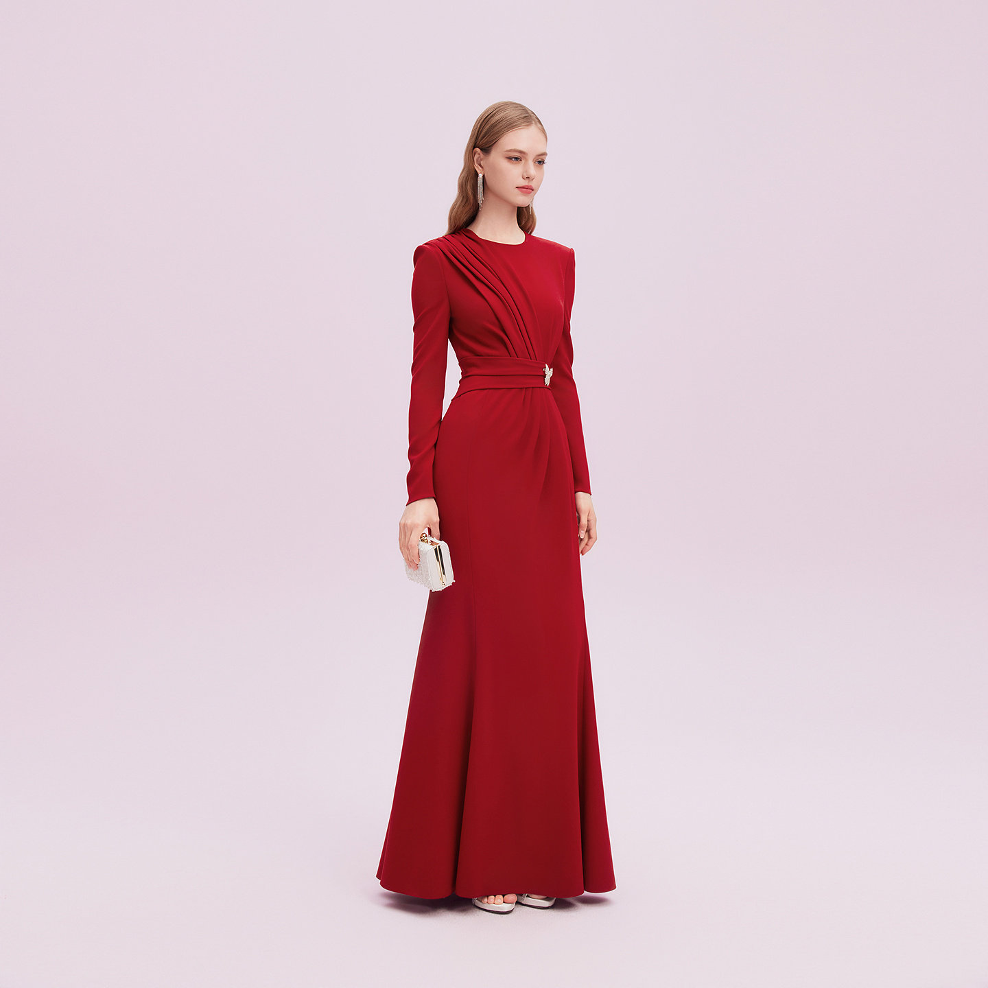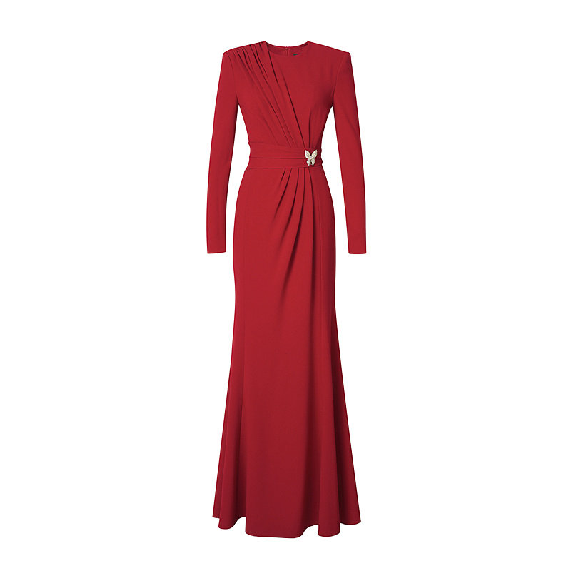 【商场同款】Lakoradior拉珂蒂减龄秋新款法式褶皱收腰鱼尾礼服裙