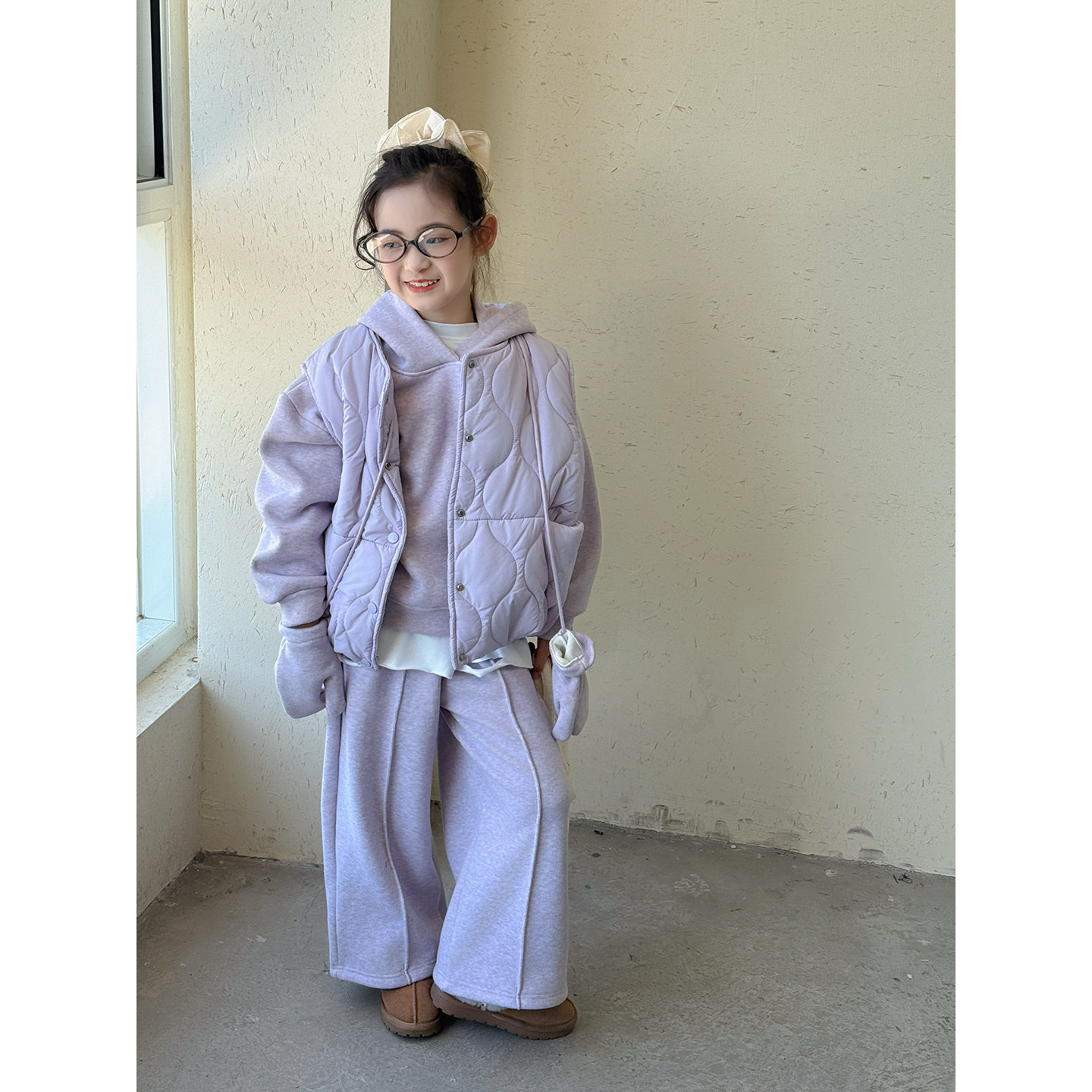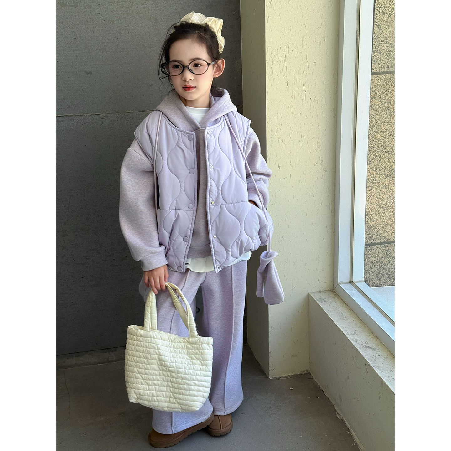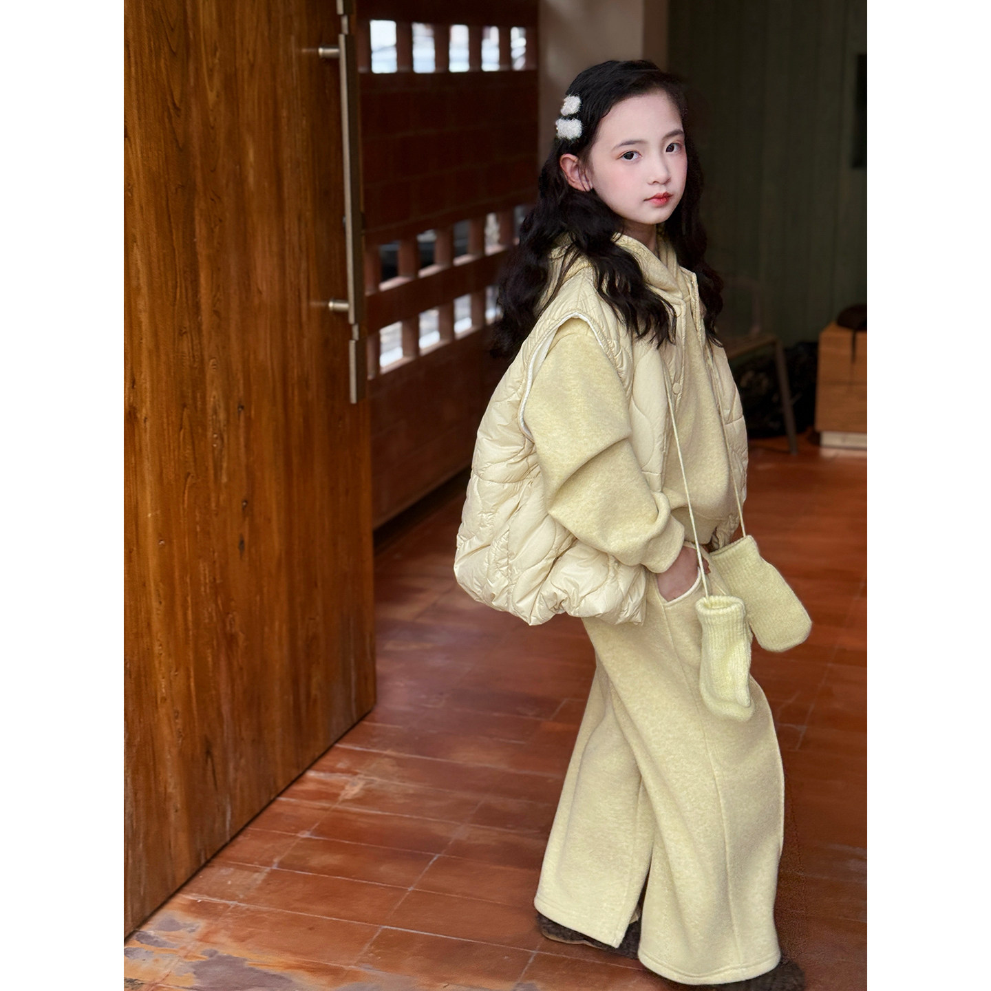 女童套装2025冬季新款儿童夹棉马甲外套洋气中大童加绒卫衣阔腿裤
