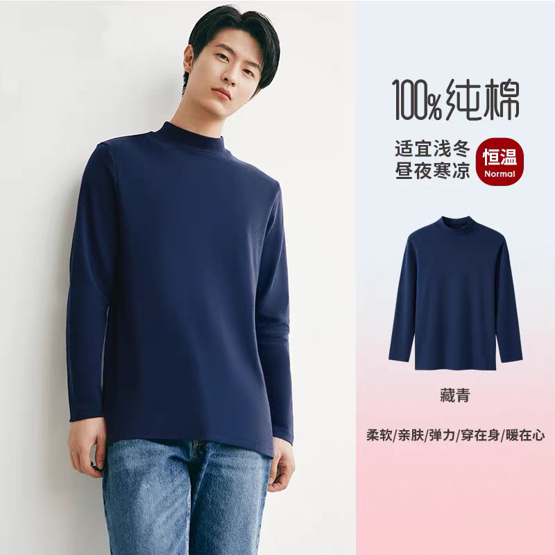 三枪秋衣女内穿纯棉秋冬长袖单件男半高领加厚打底保暖上衣棉毛衫