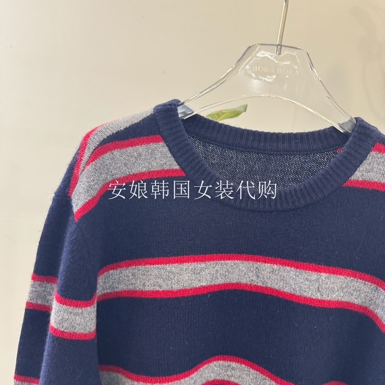 安娘韩国代购女装2025秋新时尚圆领条纹短袖针织毛衣半裙羊毛套装