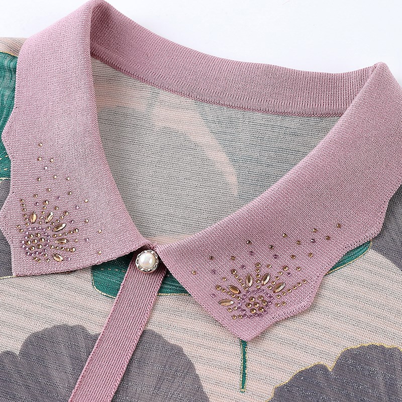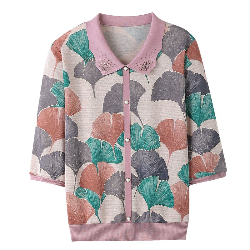 妈妈春装2024新款上衣中袖翻领t恤女套装中老年人春夏季洋气小衫