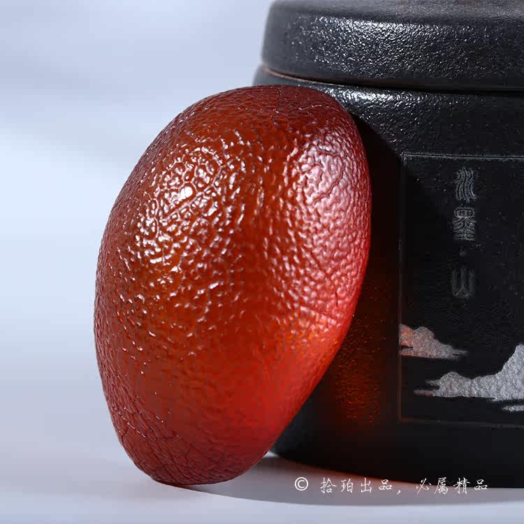 精品波罗的海原石 荔枝皮脑纹海漂籽琥珀蜜蜡原矿 红皮吊坠手把件