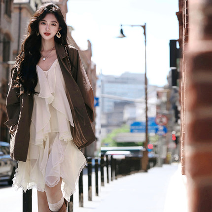 气质不规则荷叶边吊带半裙套装