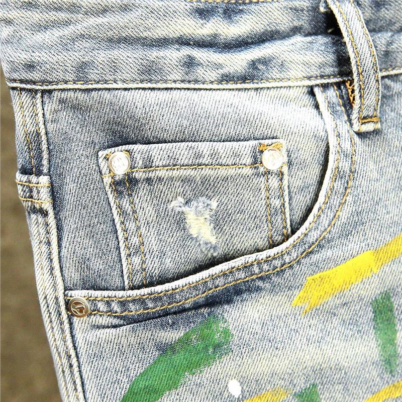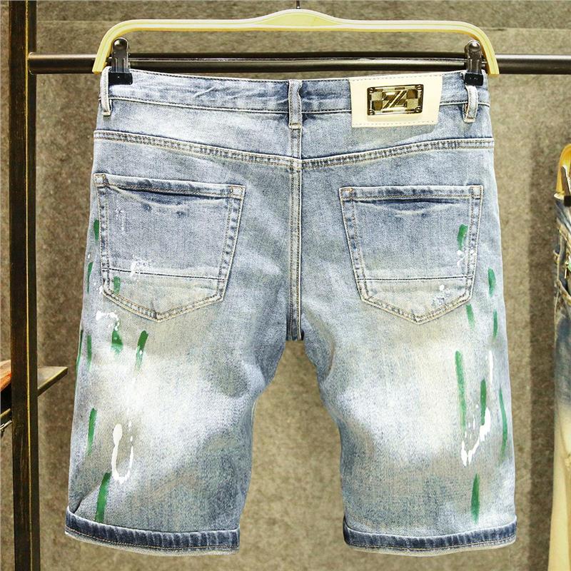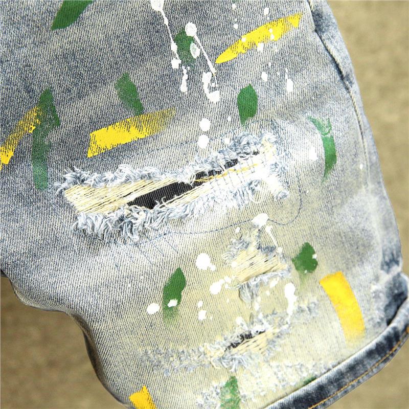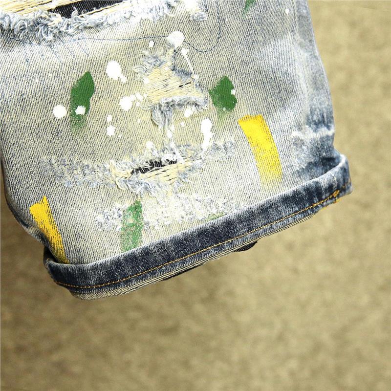 潮牌破洞牛仔短裤男潮流ins时尚泼墨夏季舒适透气时尚休闲五分裤