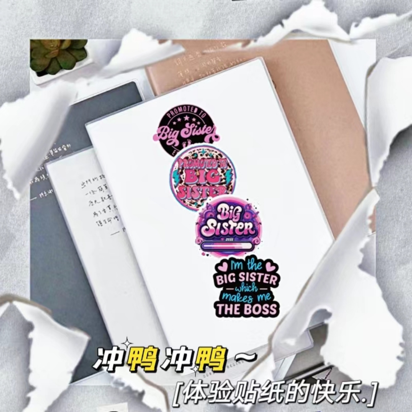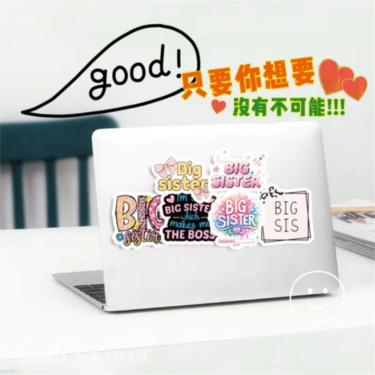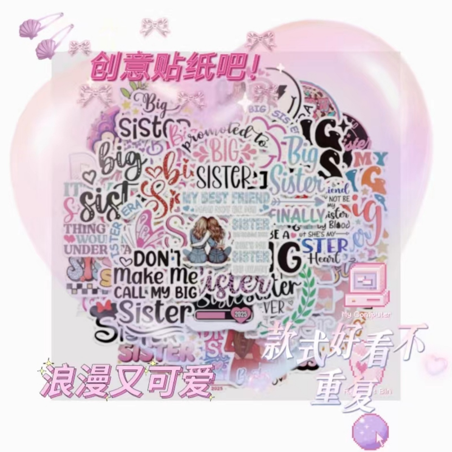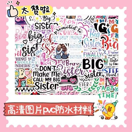 50张个性创意英文卡通BIG SISTER不重复贴纸装饰手机壳笔记本电脑ipad水杯行李箱文具盒饭卡高品质涂鸦防水贴