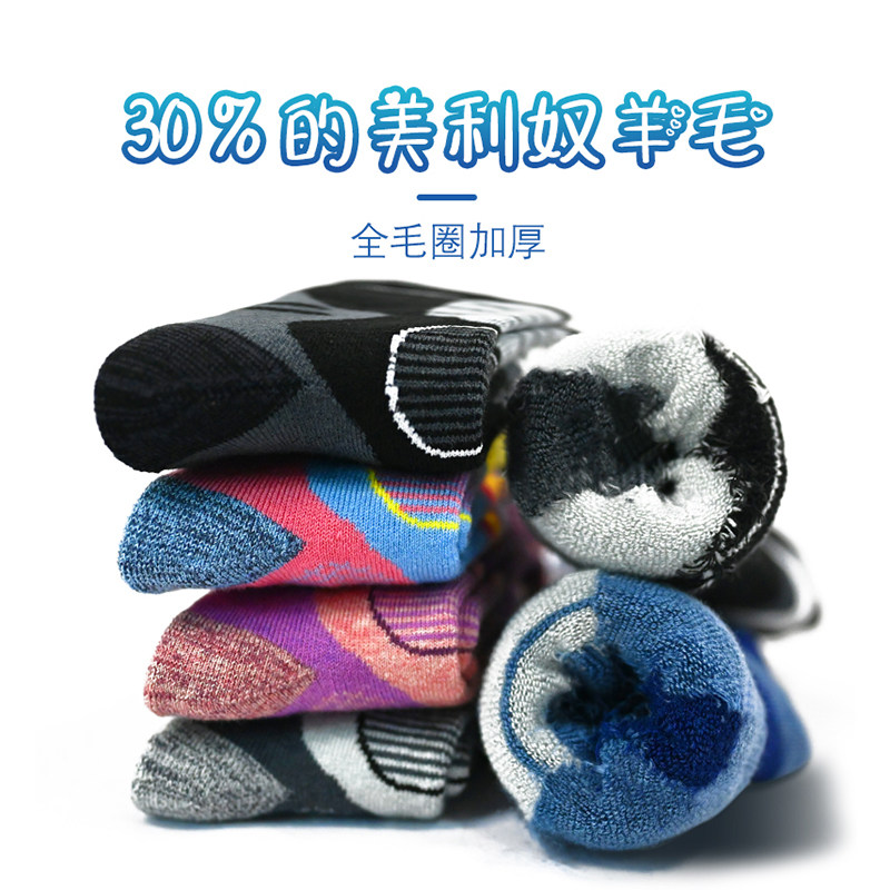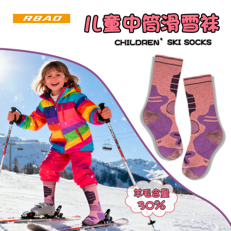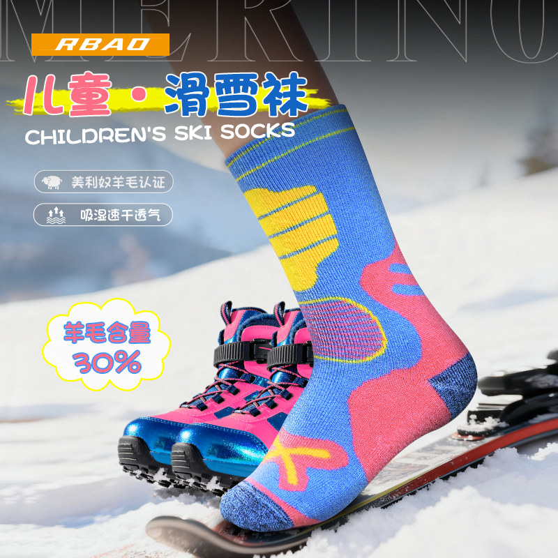 rbao四季儿童羊毛袜户外徒步运动袜吸湿排汗美利奴羊毛快干登山袜