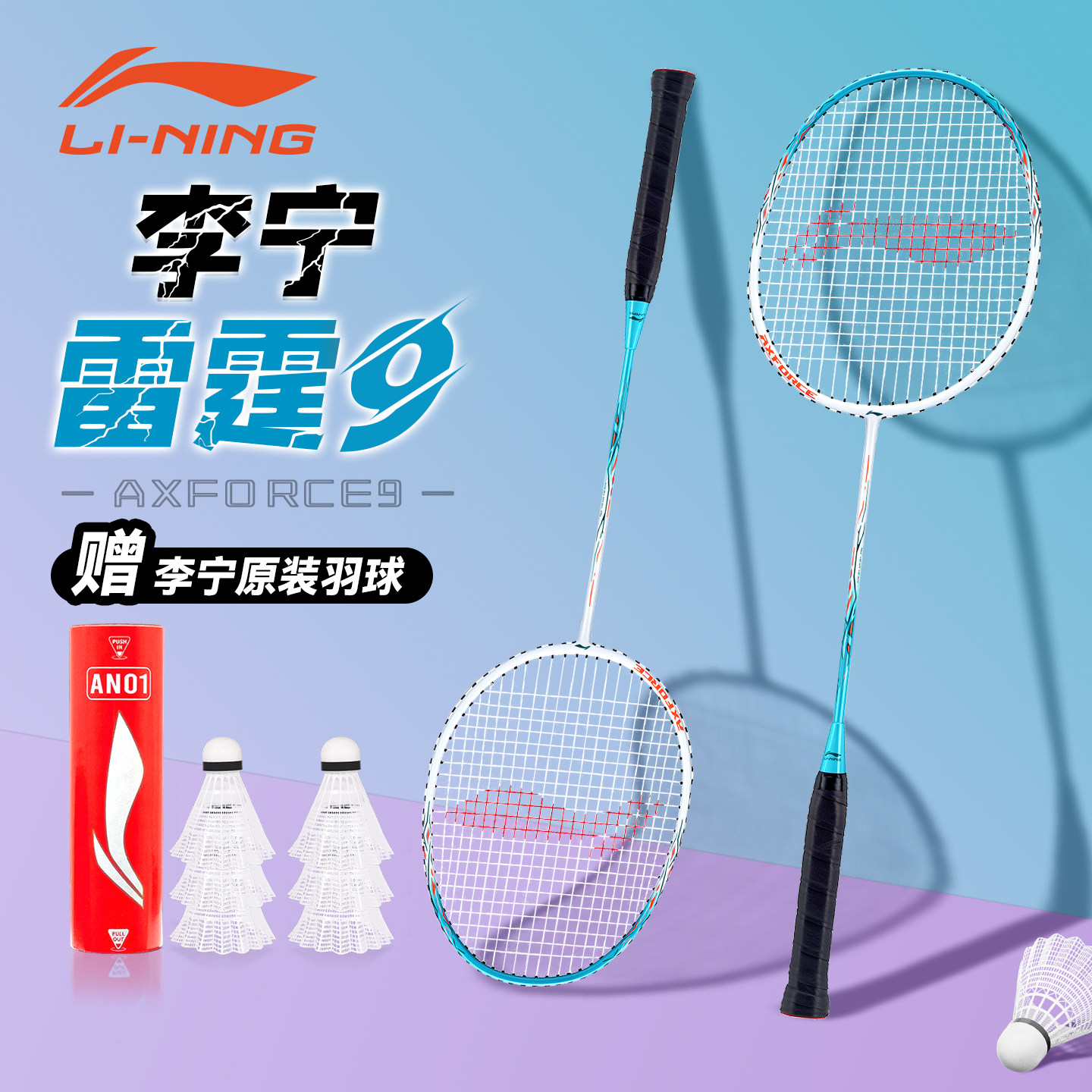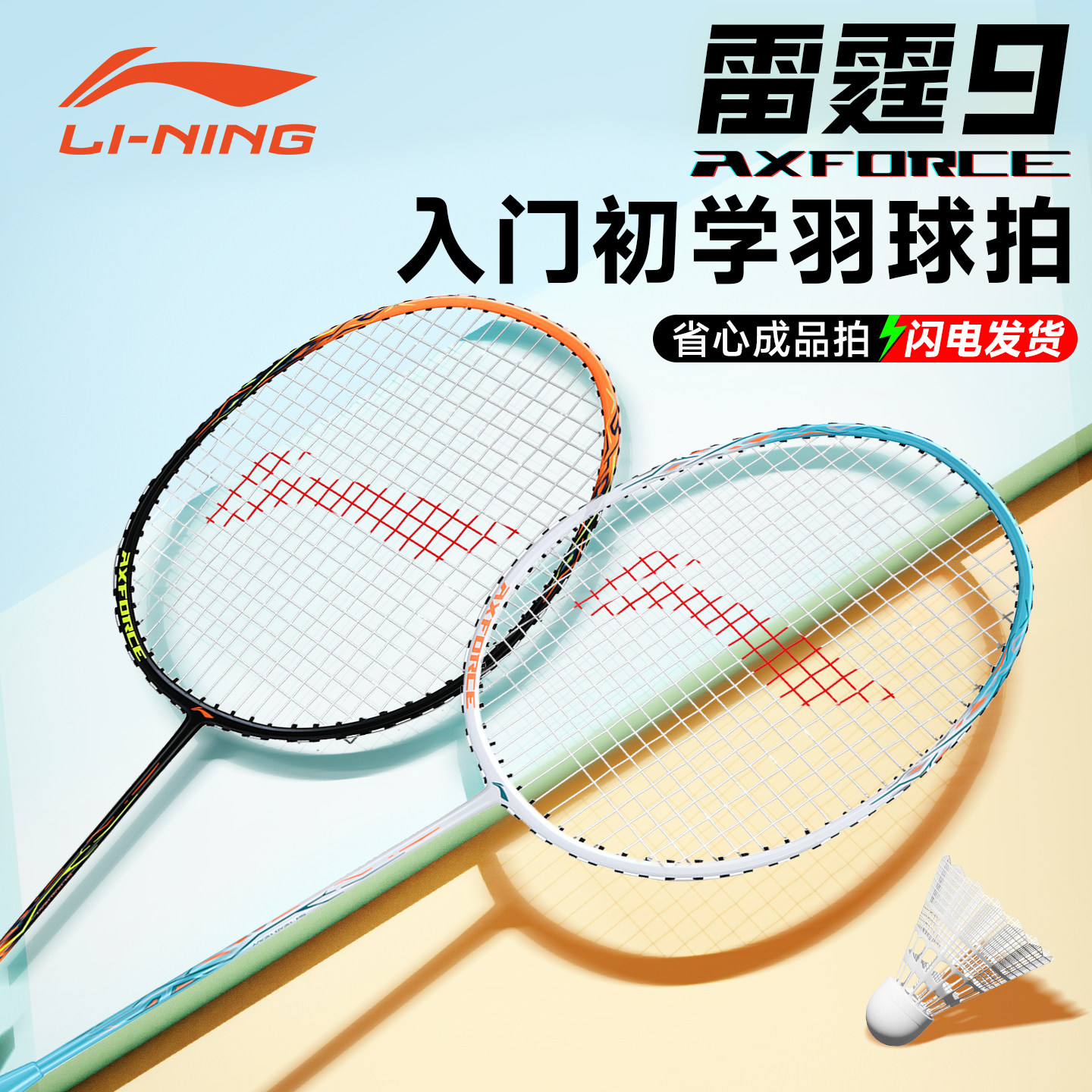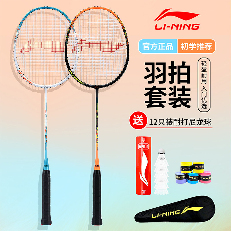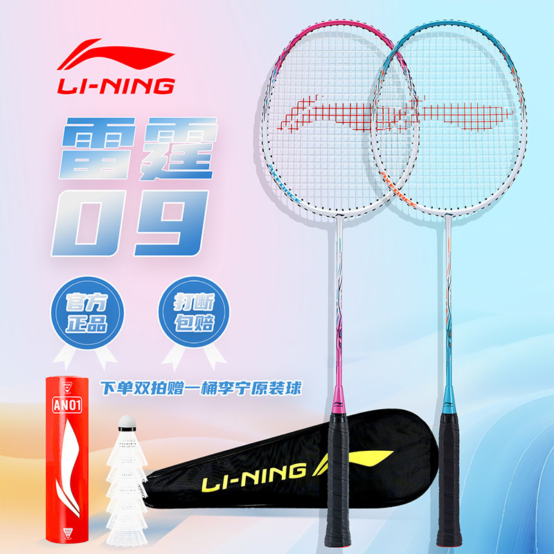 李宁羽毛球拍儿童套装正品雷霆9碳铝纤维超轻专业高颜值单拍双拍
