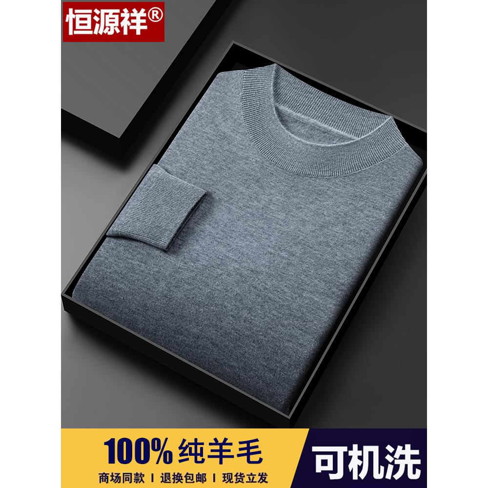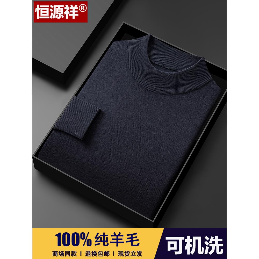 恒源祥羊毛衫男士半高领毛衣春秋薄款针织长袖t恤精纺羊绒打底衫
