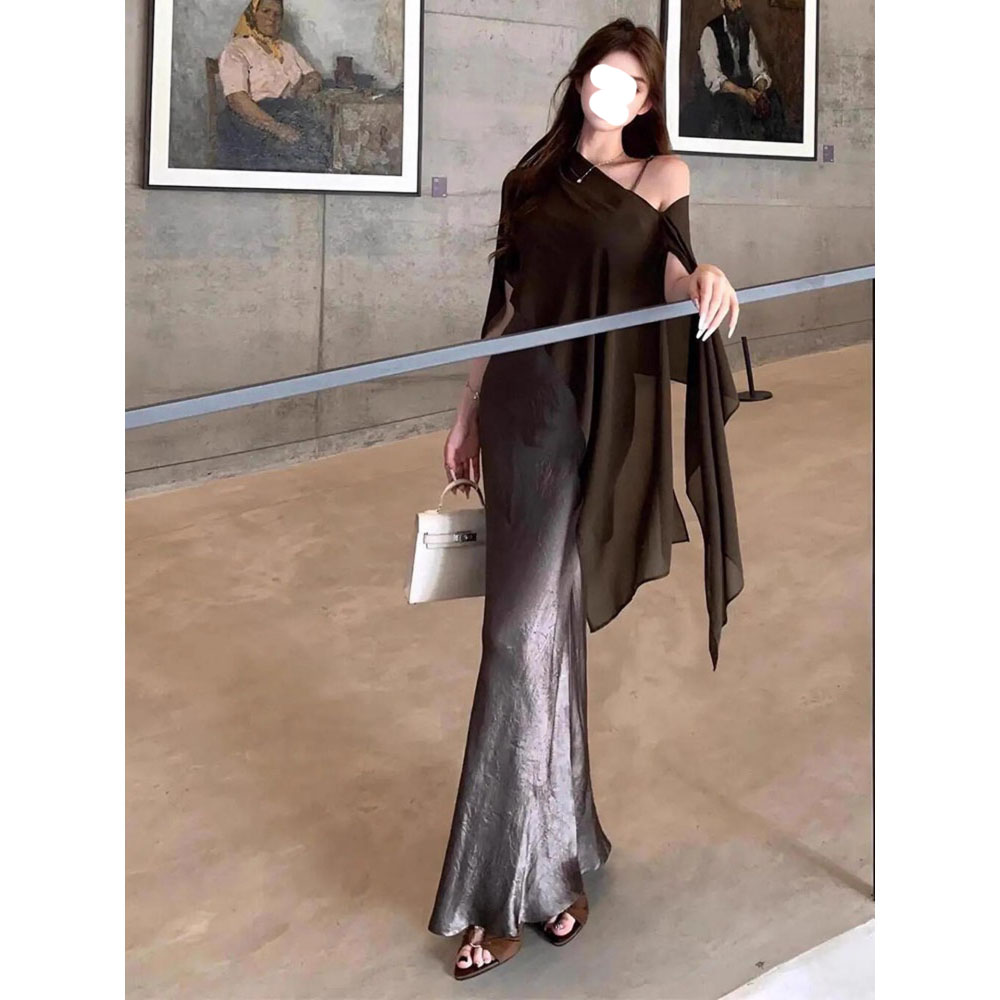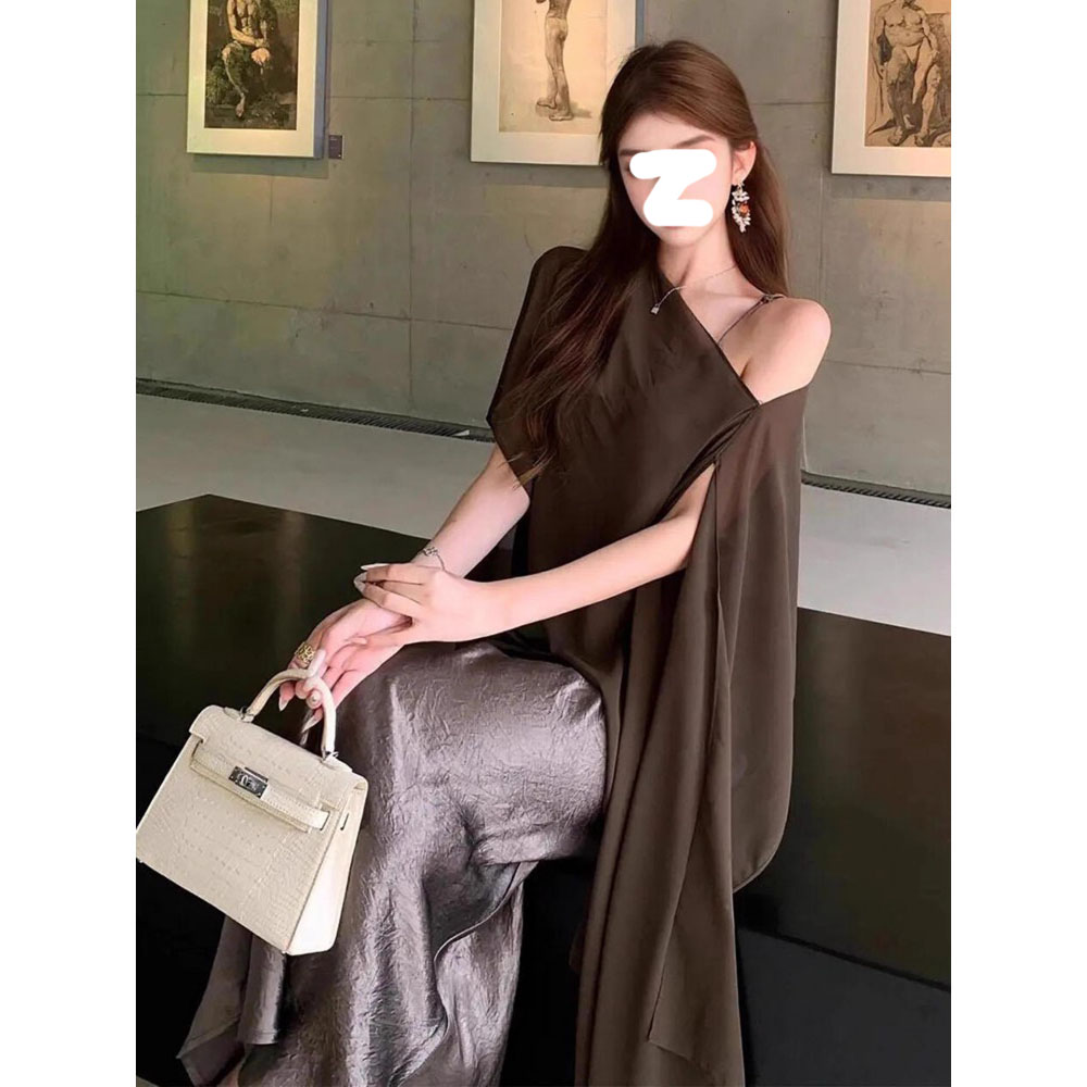 法式微胖高级感名媛风套装女夏季新款设计感小众连衣裙罩衫两件套
