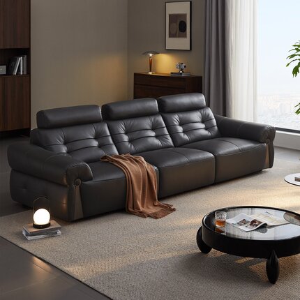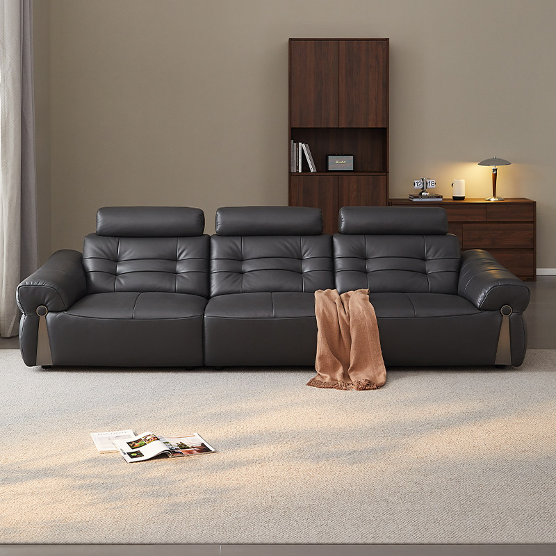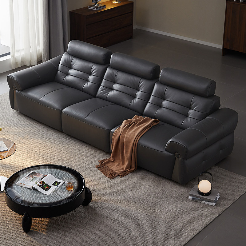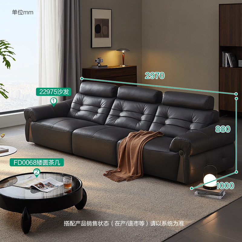 全友家居门店同款 复古风 22975 直排一字型真头层黄牛皮艺沙发