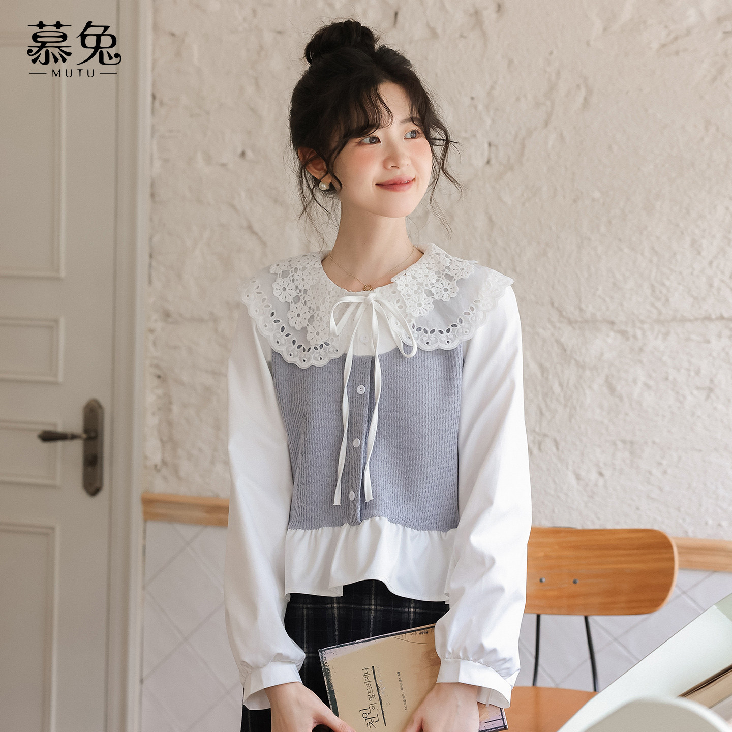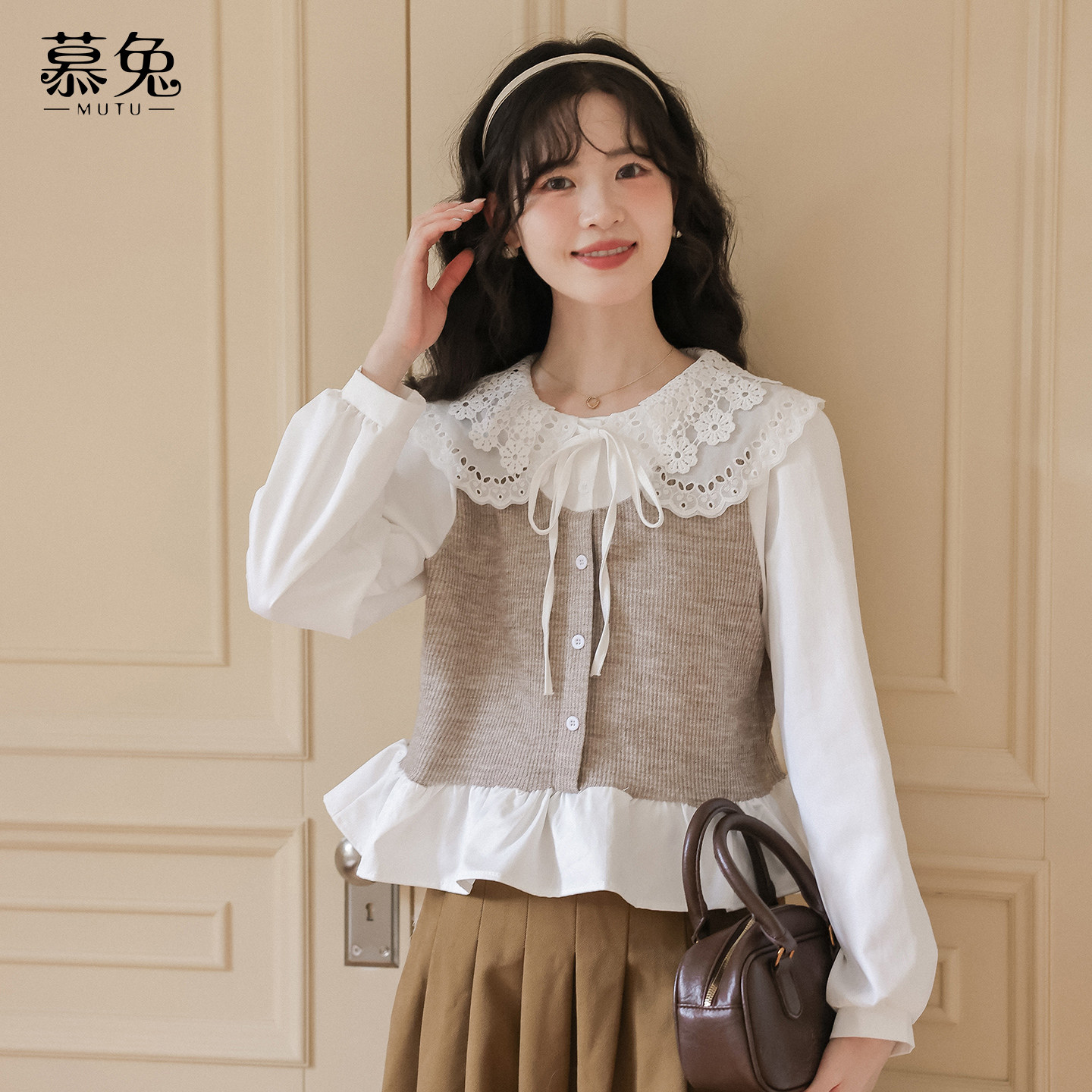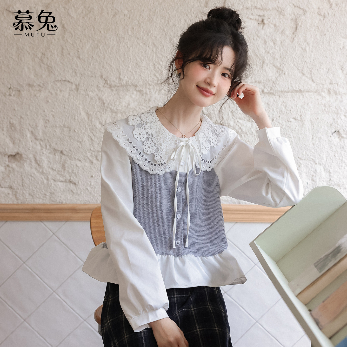 慕兔韩系娃娃领假两件衬衫