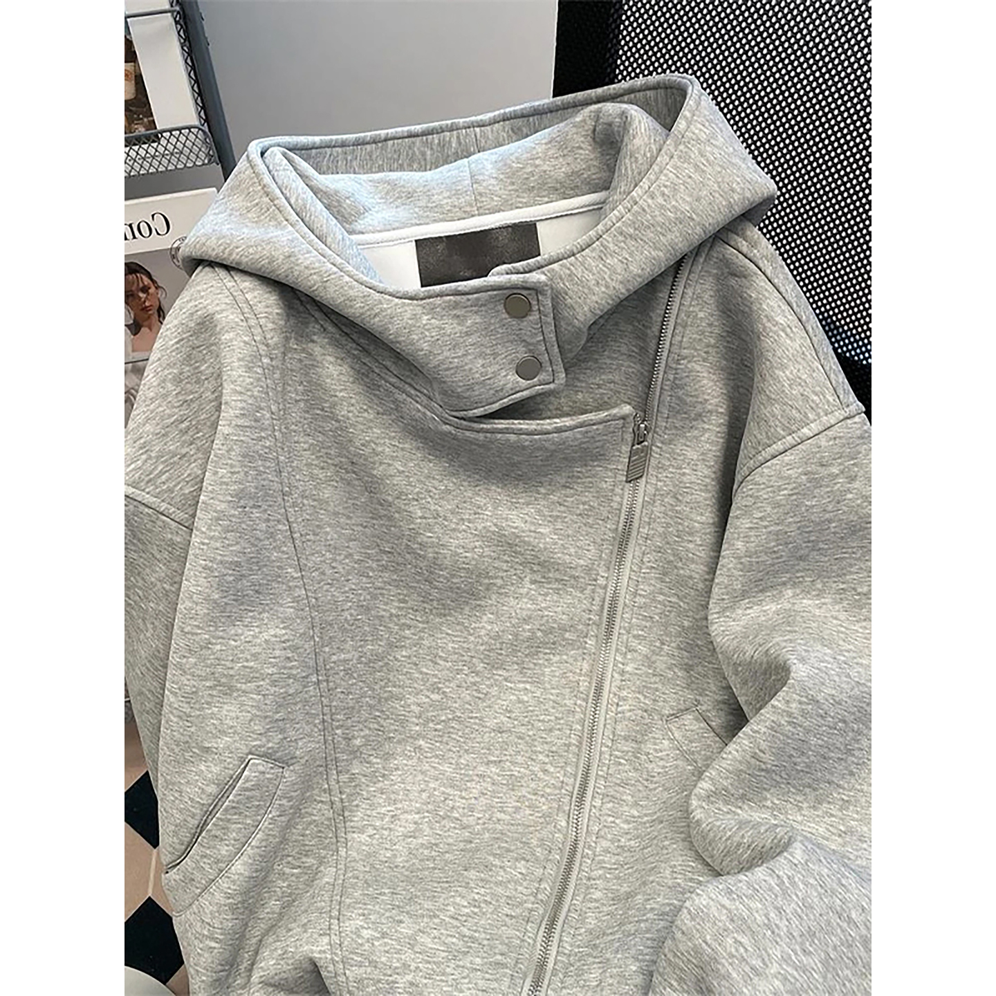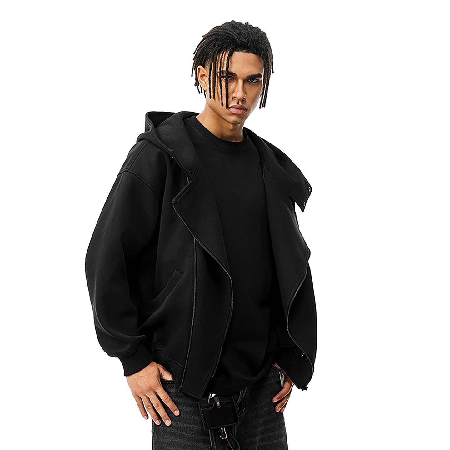 纯棉重磅开衫卫衣男款秋季美式复古空气层夹克高级感宽松连帽外套