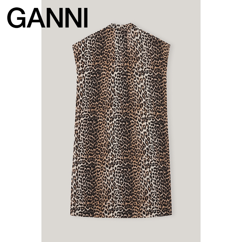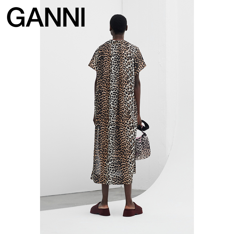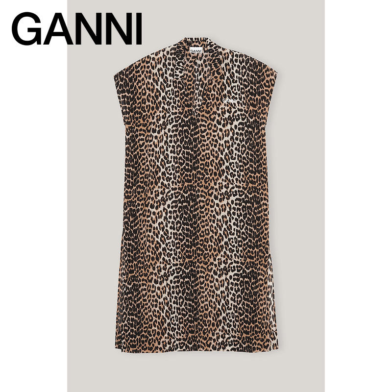 【会员抢先购】GANNI女装 时尚豹纹印花v领侧开叉连衣裙 F6953943