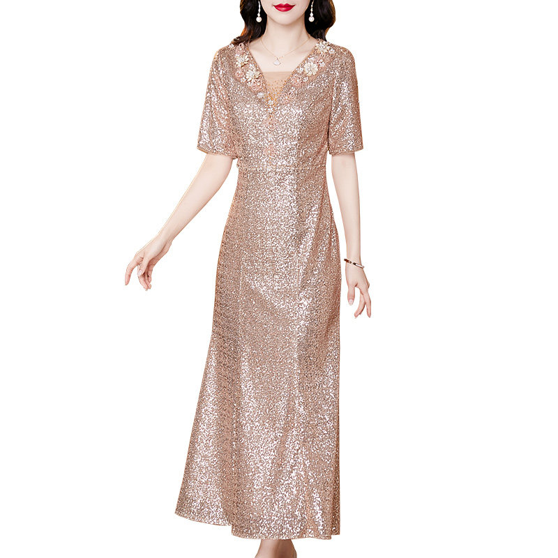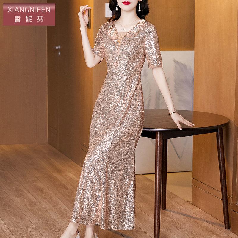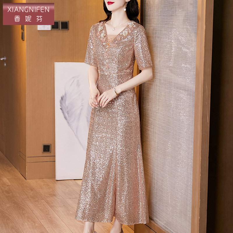 香妮芬高端精致v领减龄显瘦妈妈婚宴礼服连衣裙2026夏季新款裙子