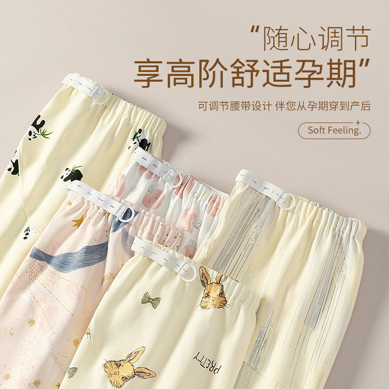 托腹孕妇睡裤纯棉春秋产妇产后月子家居裤夏季薄款大码可调节长裤