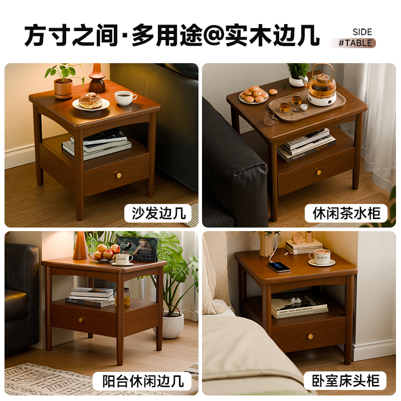 沙发边几角几实木小桌子简约客厅茶几侧边柜阳台小茶桌床头置物架
