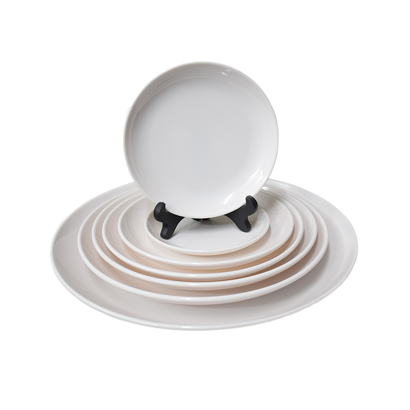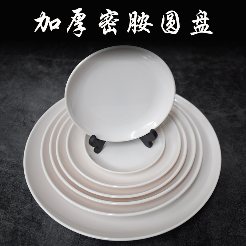 密胺盘子商用餐厅酒店仿瓷餐具快餐盘盖浇饭平盘圆形白色塑料菜盘