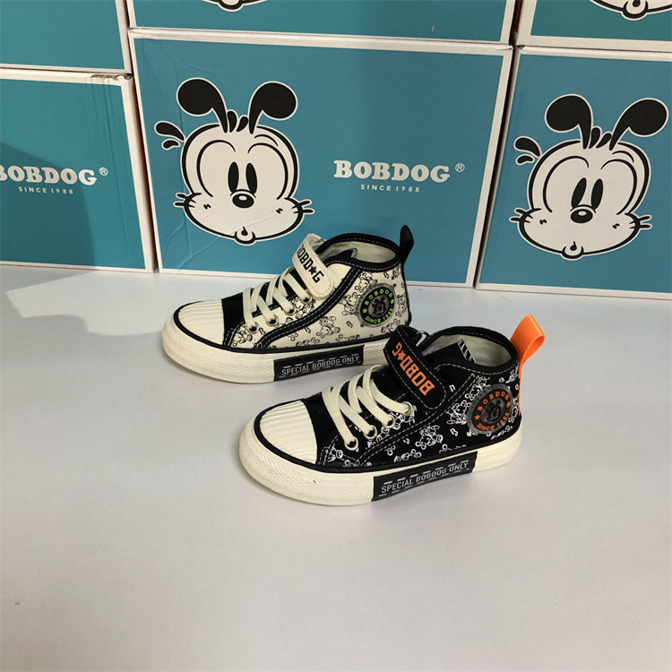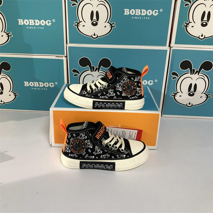 巴布豆春秋儿童黑色卡通运动鞋魔术贴高帮休闲帆布鞋1010211399