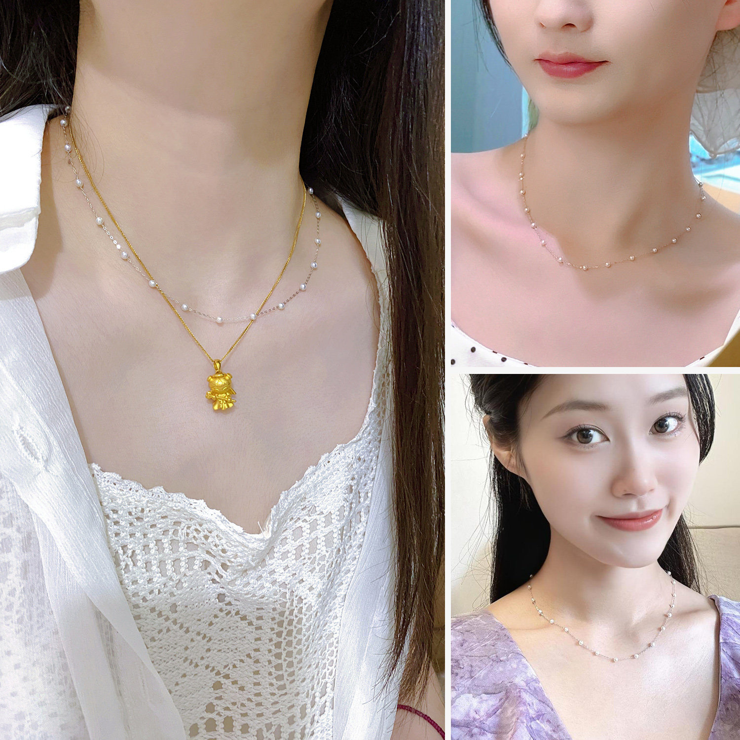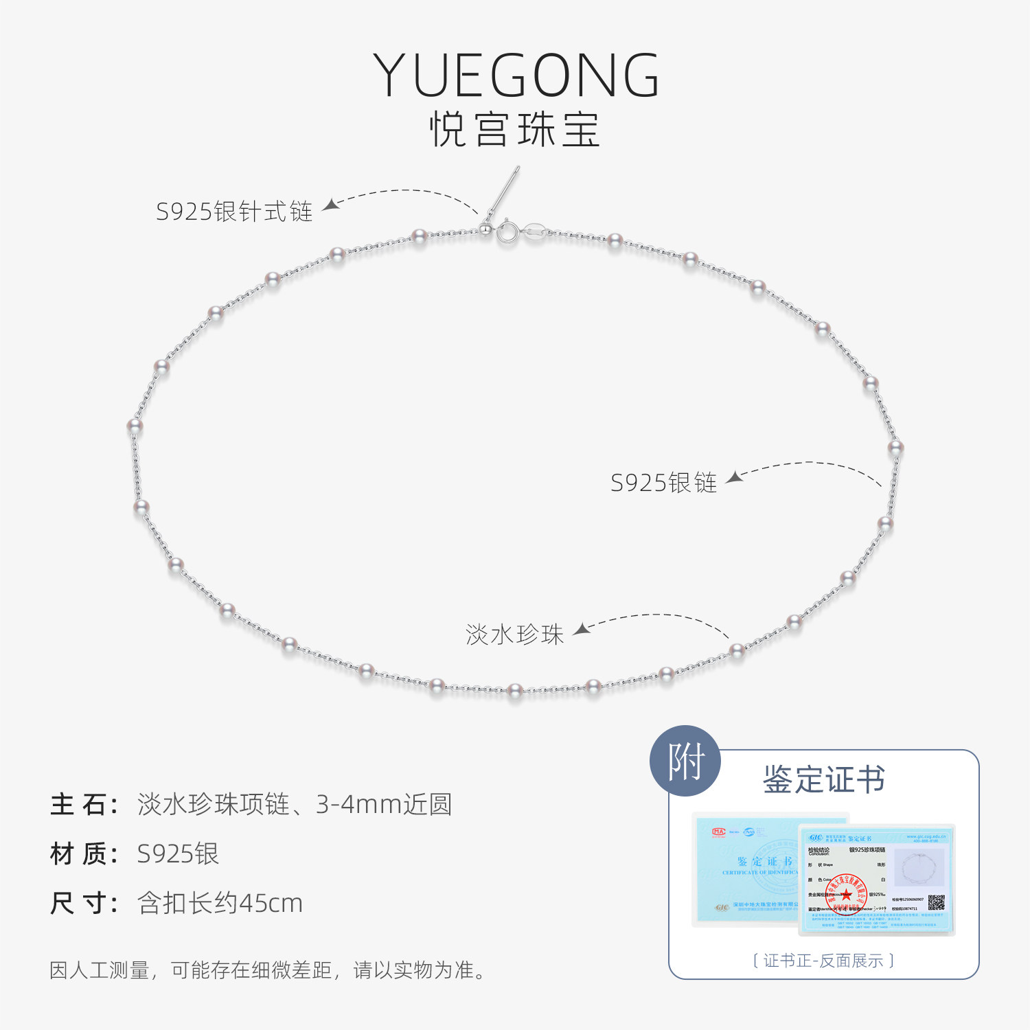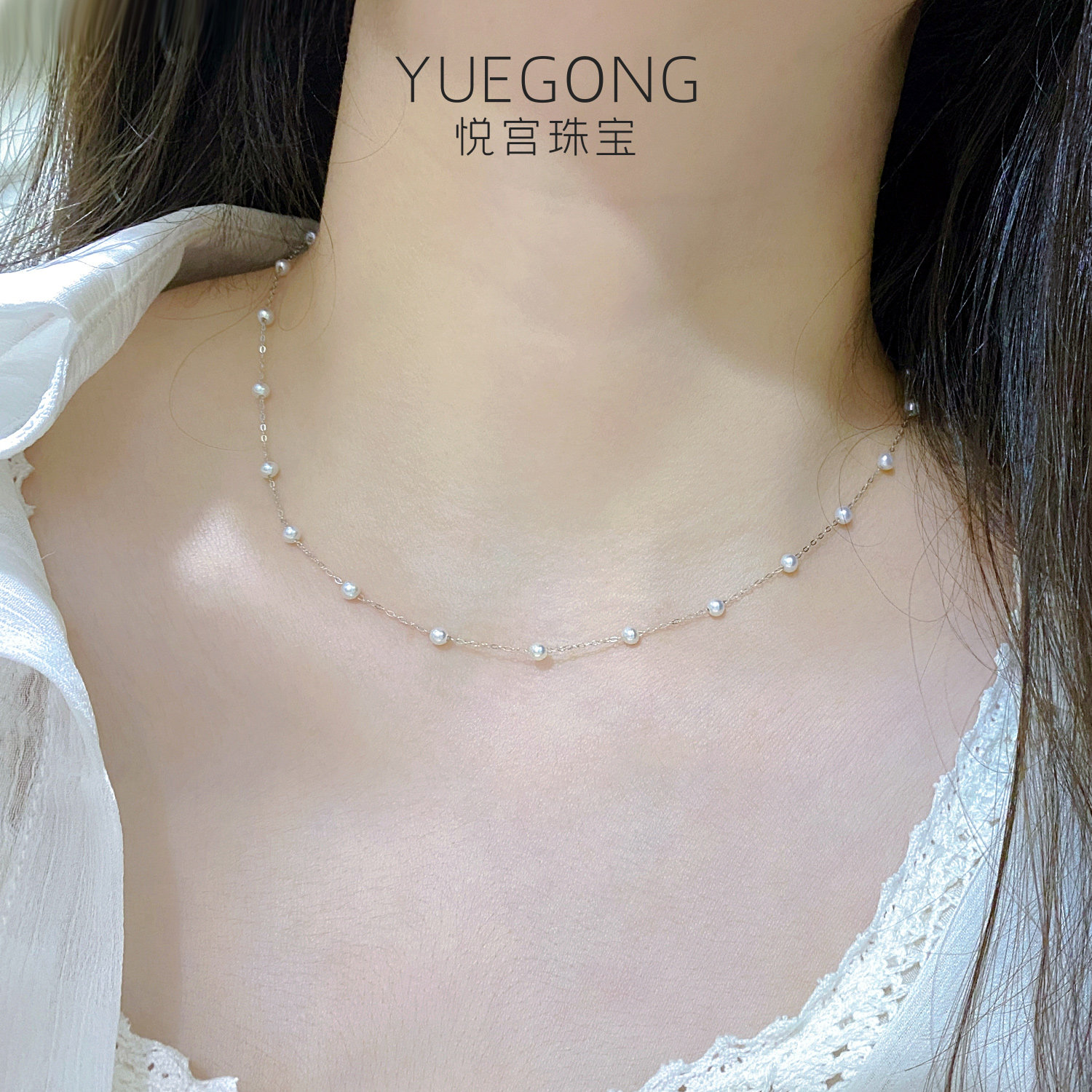 悦宫珠宝 星辰恋 S925银满天星珍珠项链3-4mm淡水珍珠锁骨链时尚