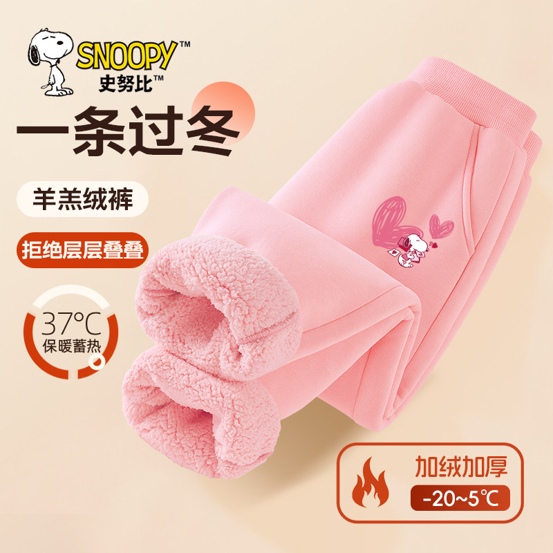 史努比女童加厚绒裤子冬2025新款一体绒裤女孩羊羔绒卫裤儿童棉裤
