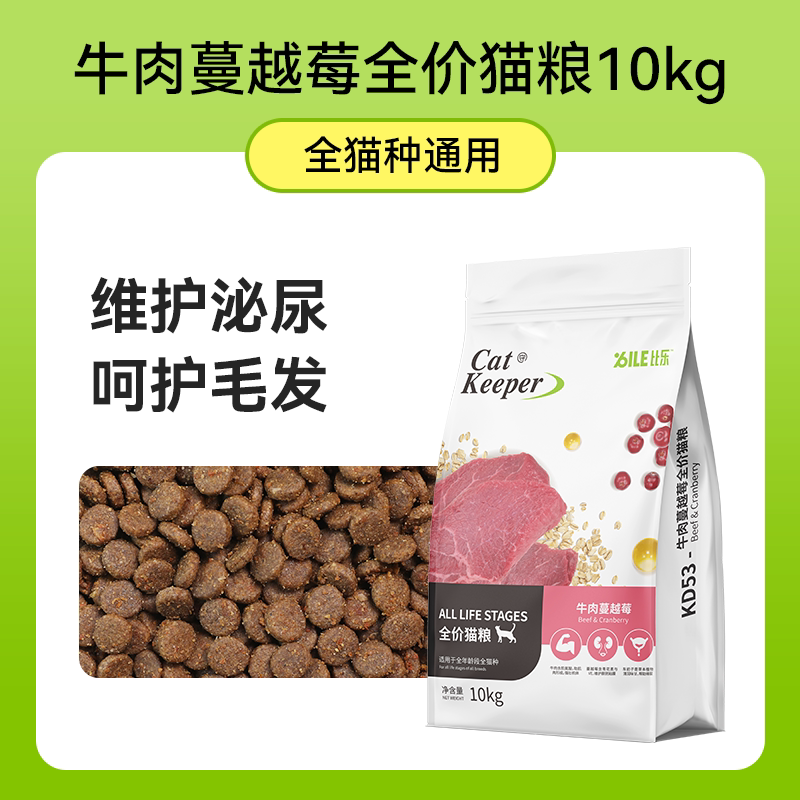 比乐猫粮金枪鱼全期成猫幼猫去毛球鸡肉牛磺酸营养美毛猫粮10kg