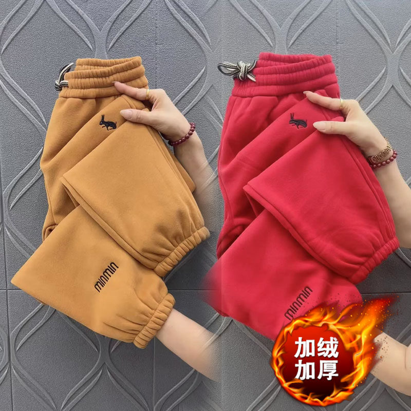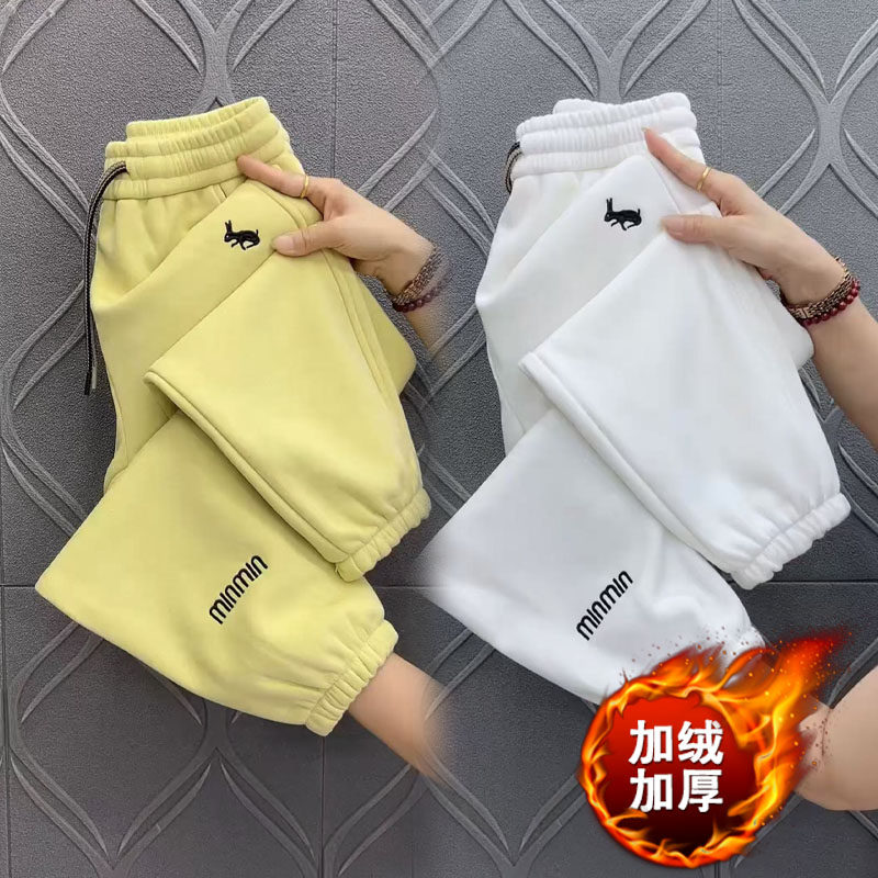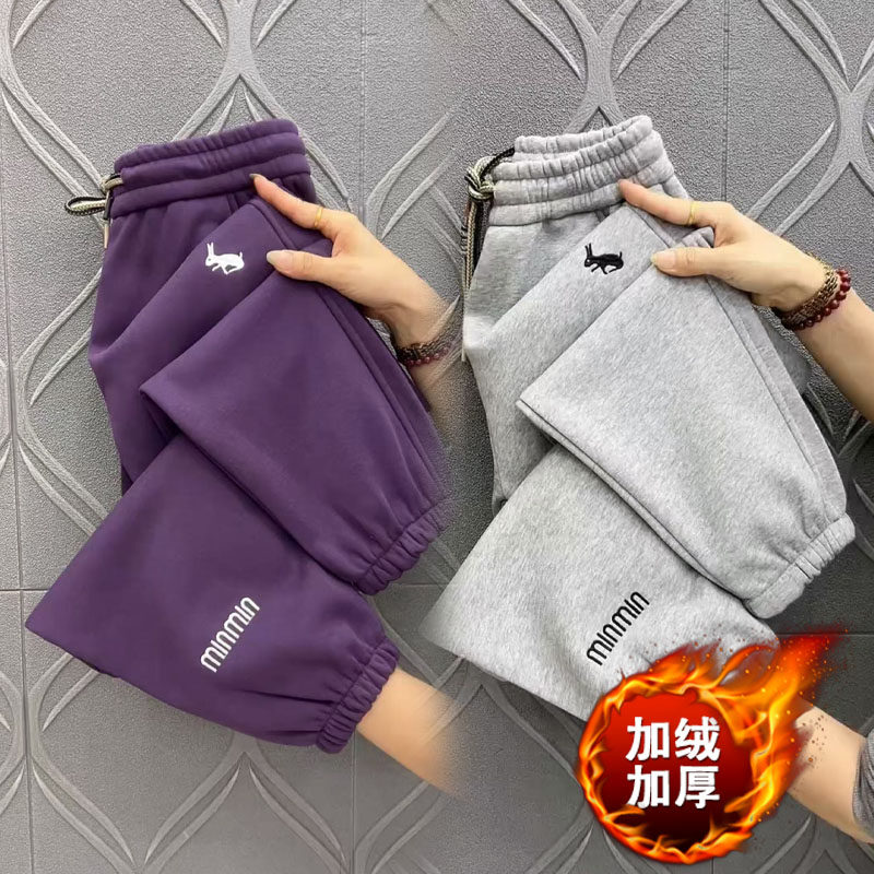 卫裤女冬季新款加绒加厚运动裤时尚显瘦休闲裤宽松刺绣束脚哈伦裤