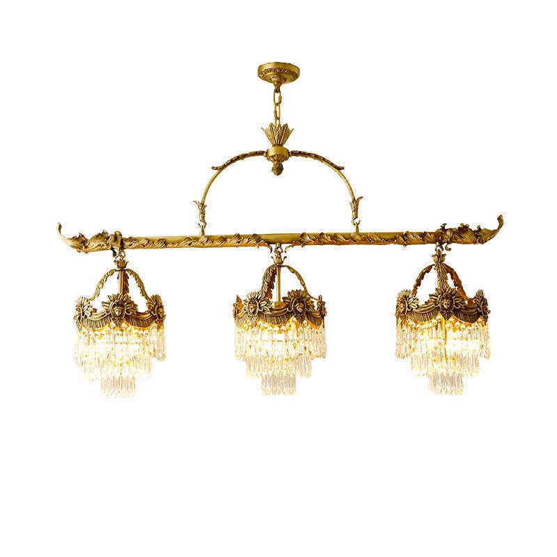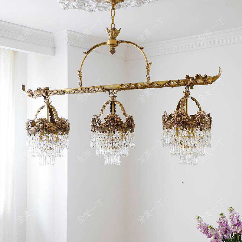 法式长型餐厅吊灯欧式书房水晶奢华大气复古别墅全铜高级氛围灯具