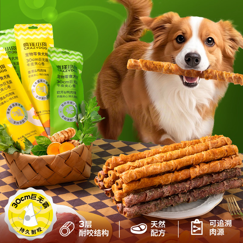 疯狂小狗狗磨牙棒巨无霸牛皮夹心卷中大型犬泰迪柯基宠物零食洁齿