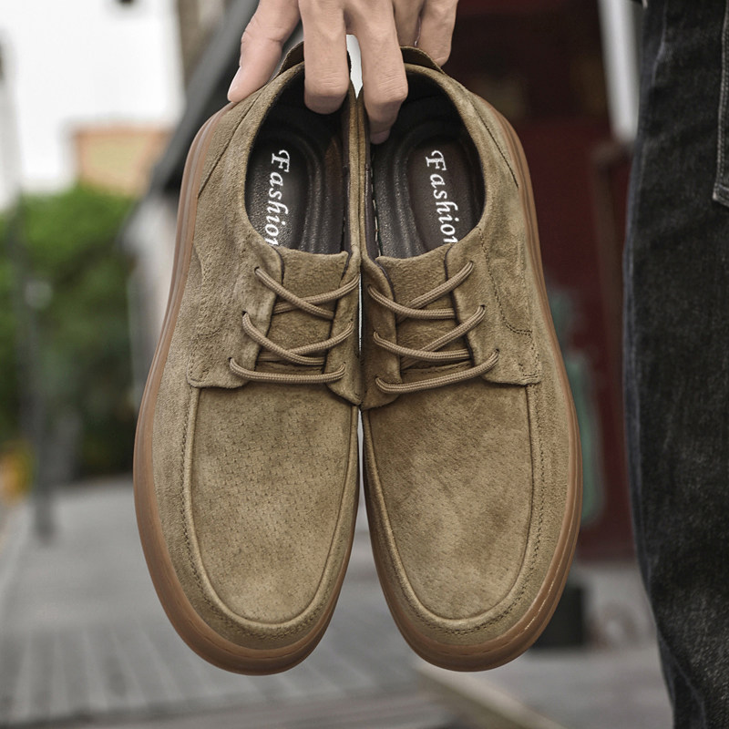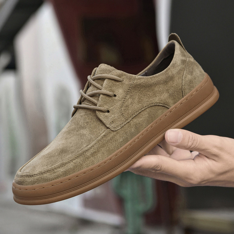 休闲皮鞋男冬季英伦风复古男士板鞋反绒皮正装商务牛筋底平底男鞋