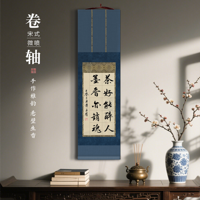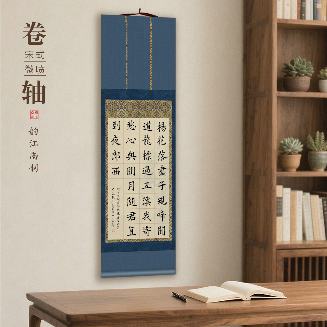 宋式蜡染微喷方格子卷轴四尺对开半生半熟宣纸空白卷轴纸书法作品专用纸毛笔作品挂轴初学者考试练习纸参赛