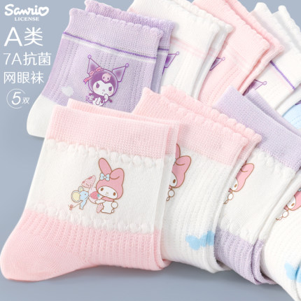 库洛米女童袜子25春夏季薄款网眼棉袜秋抗菌防臭宝宝儿童白色短袜