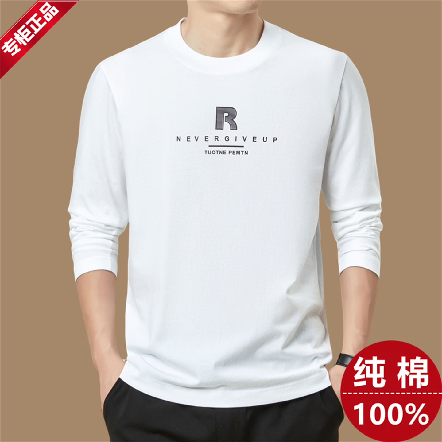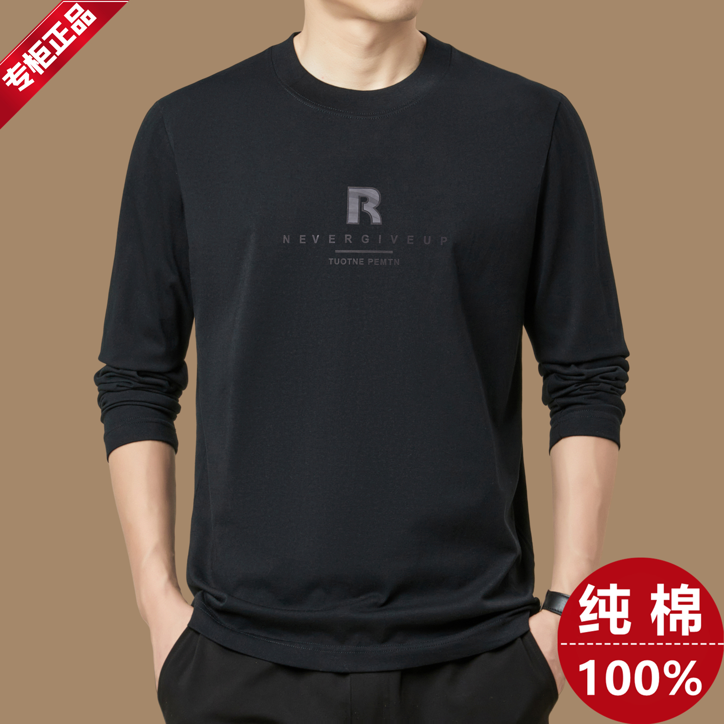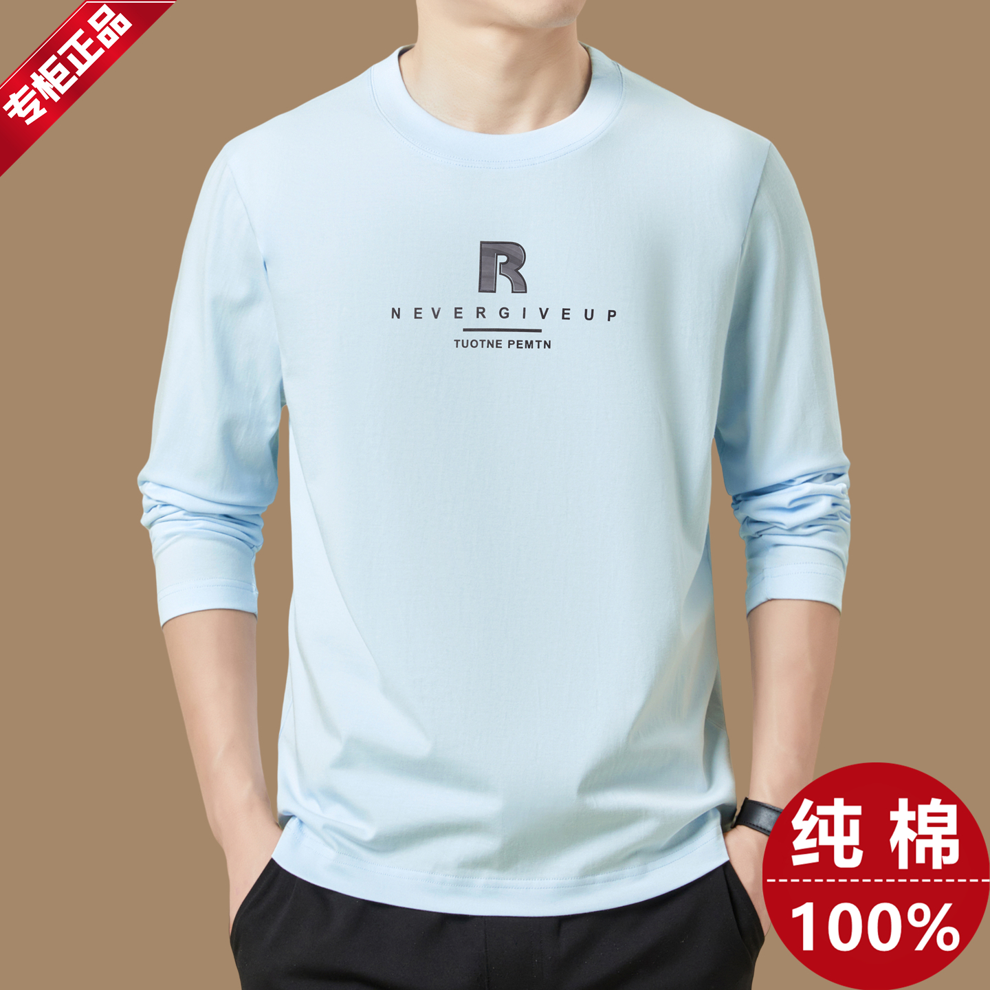 高端100%纯棉男士圆领长袖t恤春秋季休闲时尚百搭亲肤打底衫上衣T
