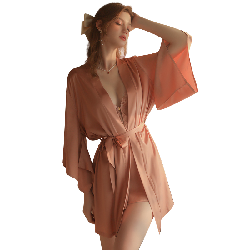 性感睡衣女冰丝夏季2024年新款小胸纯欲风火辣蕾丝吊带睡裙两件套