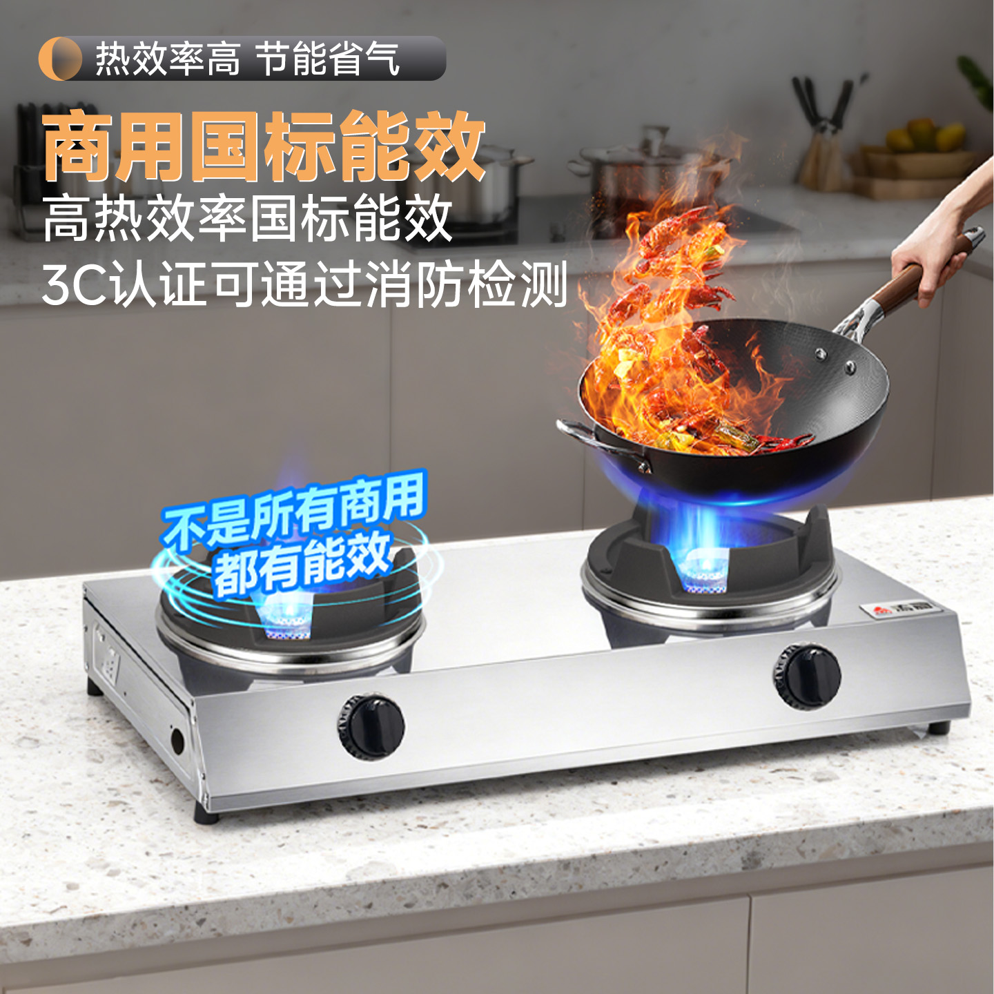 志高聚能燃气双灶家用商用不锈钢猛火炉头节能爆炒灶具带熄火保护