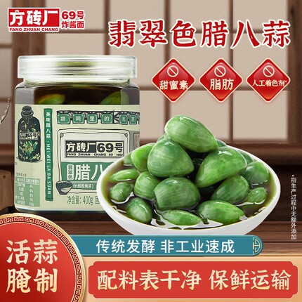 方砖厂69号翡翠腊八蒜糖醋蒜绿蒜醋泡蒜腊八蒜正宗下饭菜400g瓶装