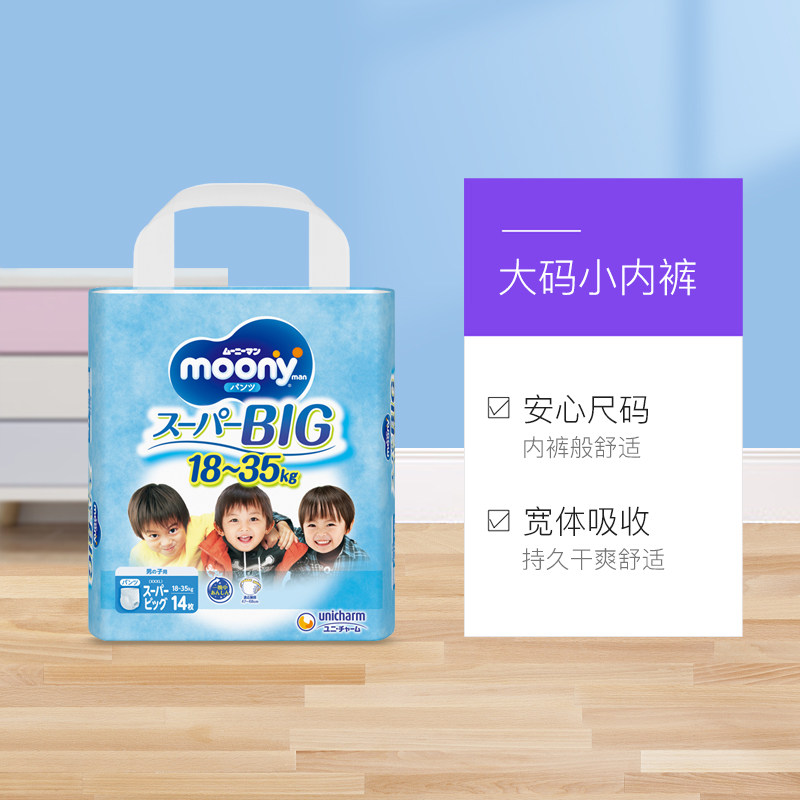 直营moony婴儿纸尿裤xxxl14男孩