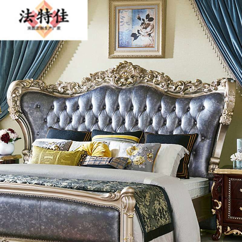 欧式床双人床新古典实木手工艺雕花真皮2米大床1.8米主卧双人床床