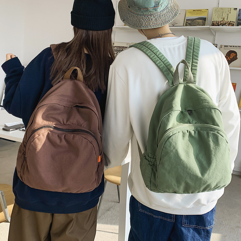 双肩包女大学生帆布包日系纯色简约初中高中生书包森系百搭背包男