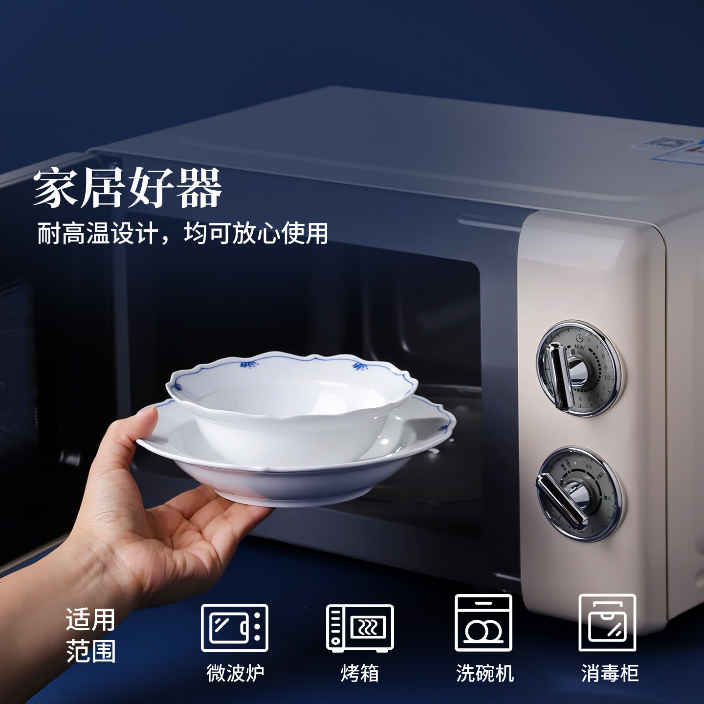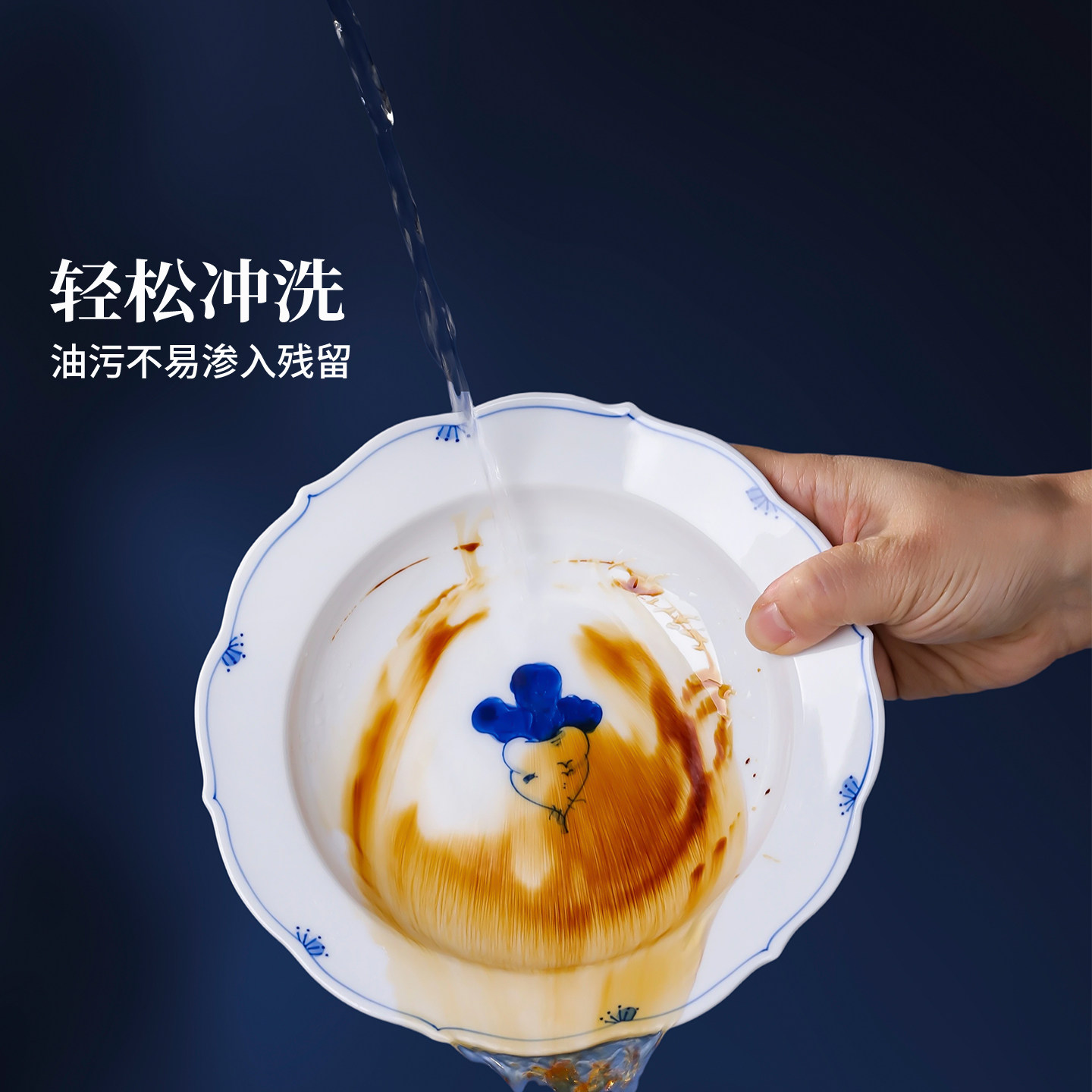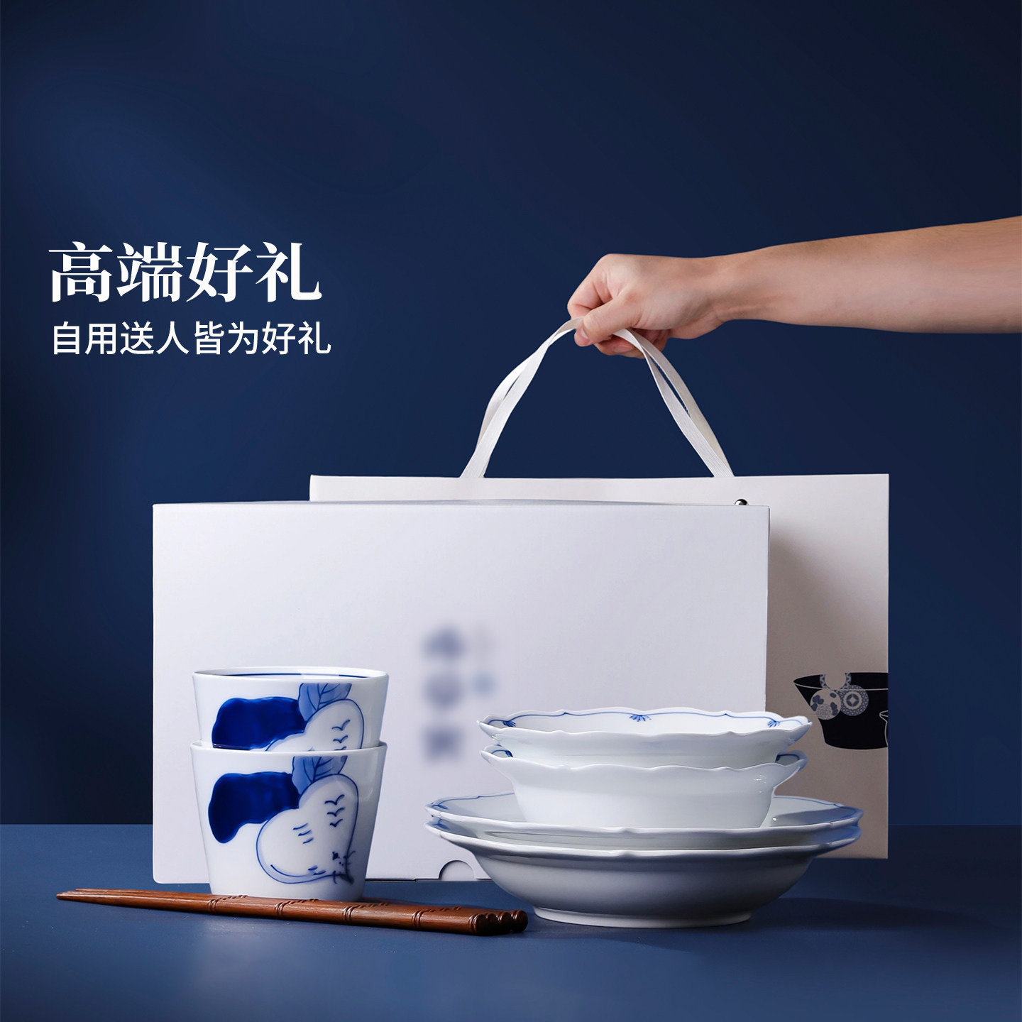 景德镇官方陶瓷青花瓷釉下手绘餐具套装家用瓷器饭碗盘子餐盘送礼