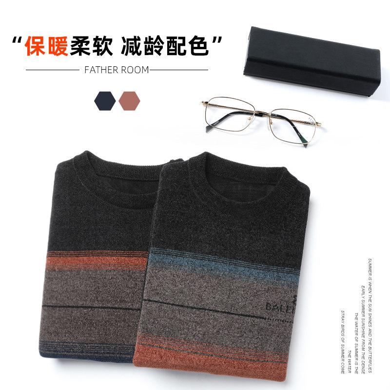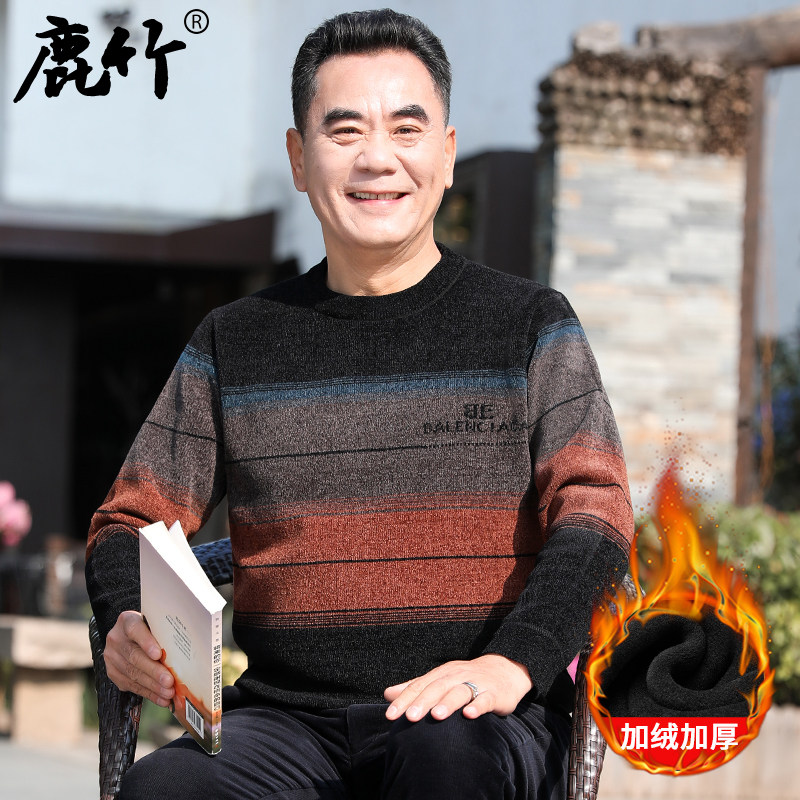 爸爸毛衣加绒加厚中老年爷爷打底保暖秋冬季中年男士雪尼尔针织衫