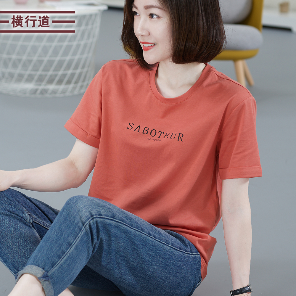 2025新款夏装纯棉短袖宽松上衣胖MMt恤女字母圆领女士半袖打底衫