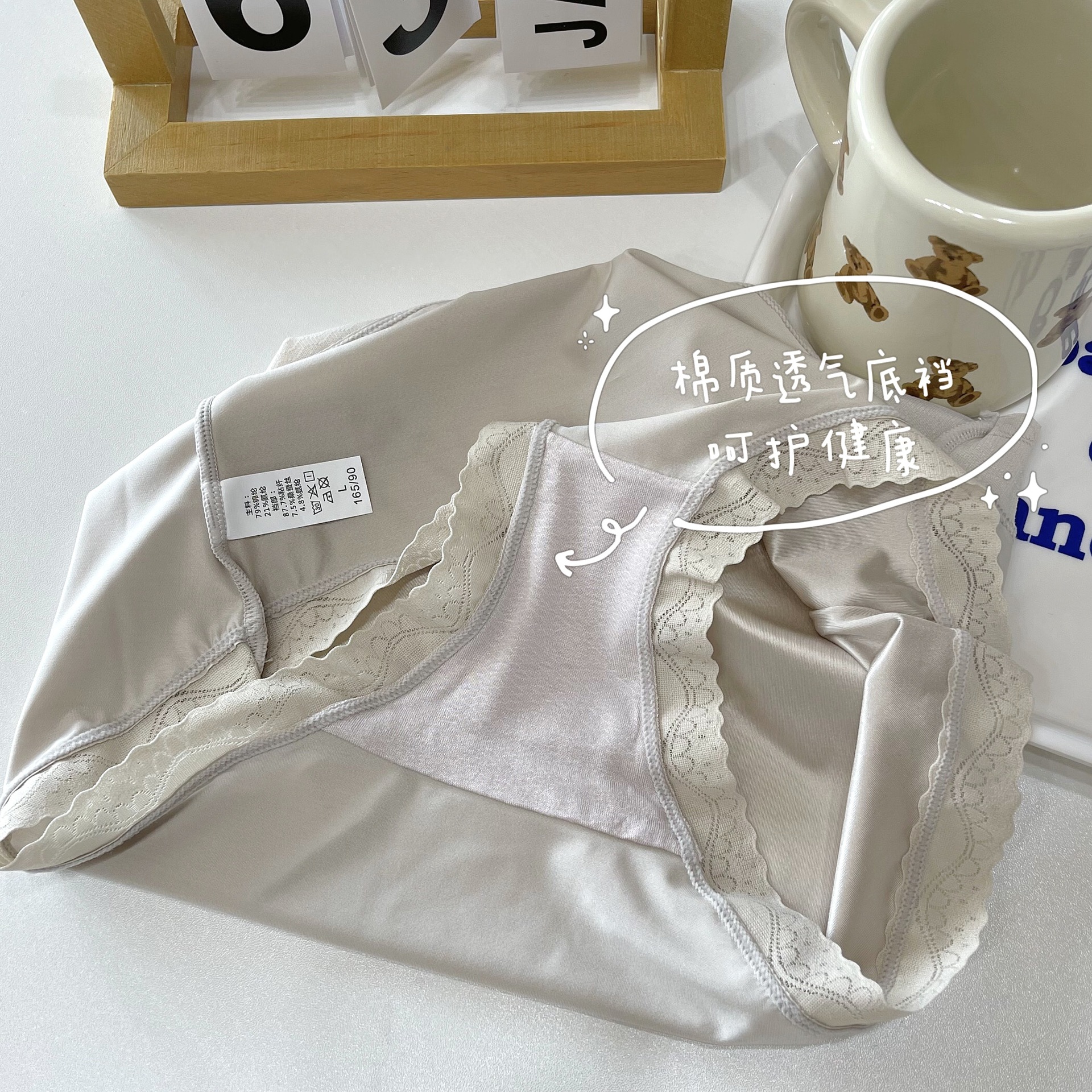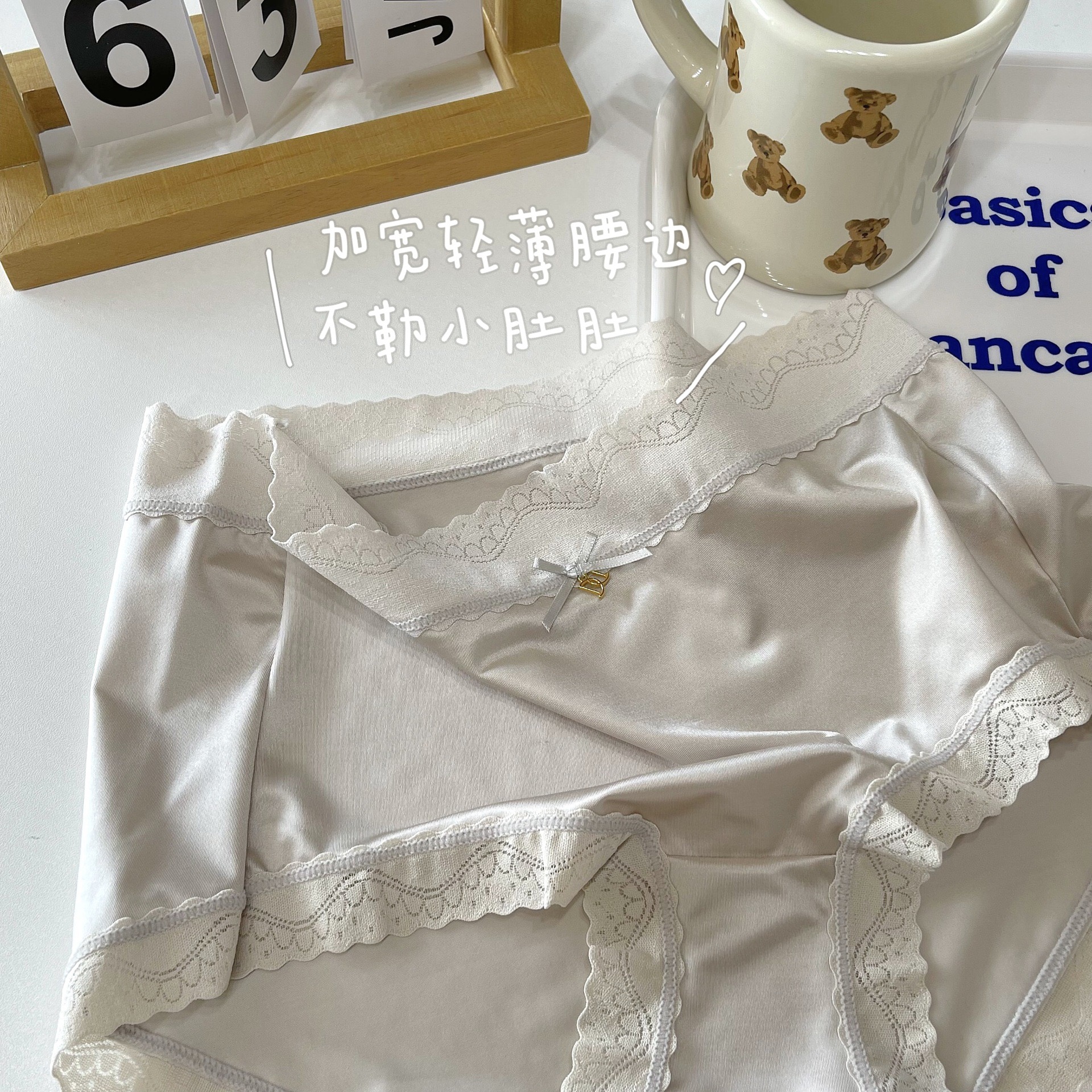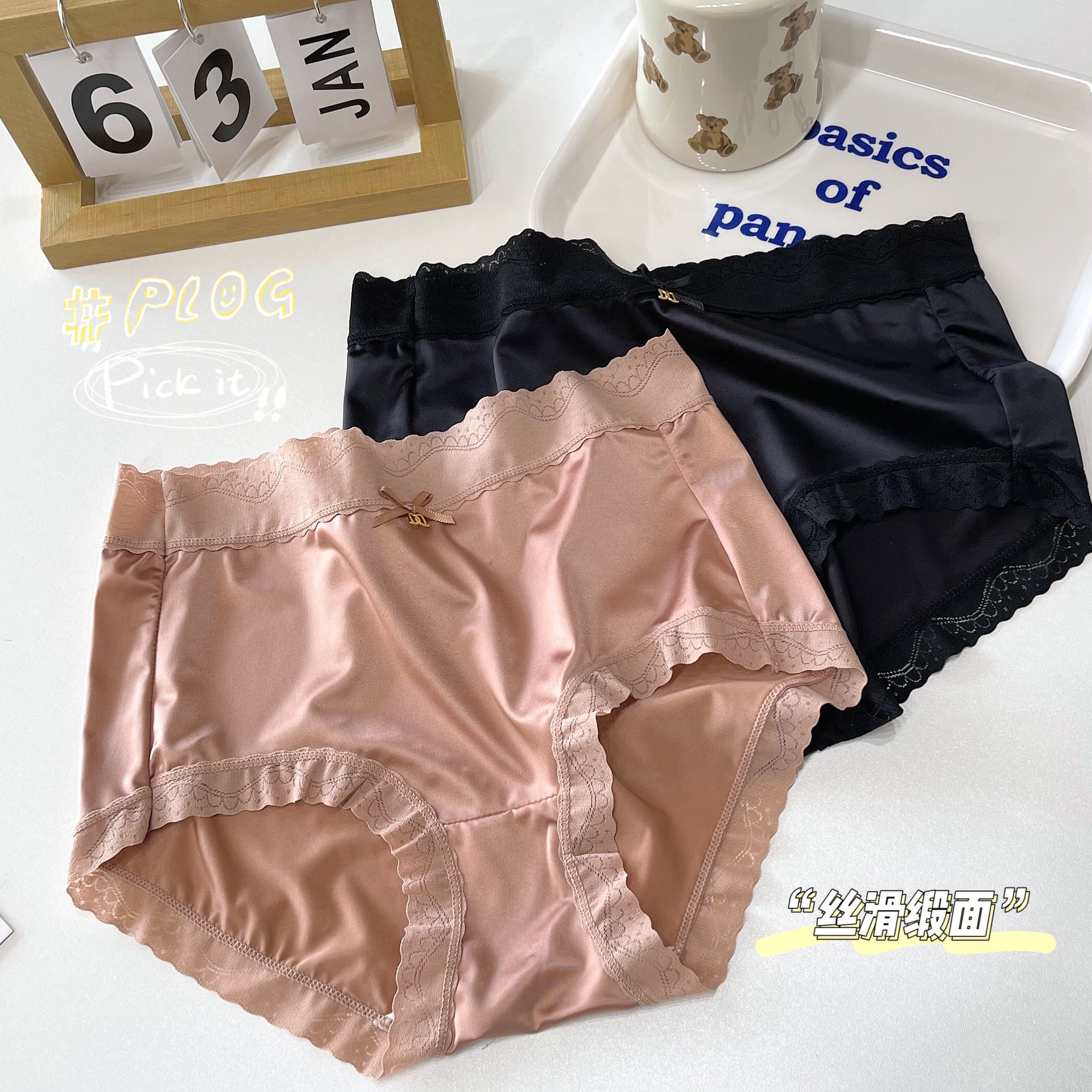法式轻奢缎面冰丝性感收腹中高腰桑蚕丝底棉裆三角内裤女胖mm大码