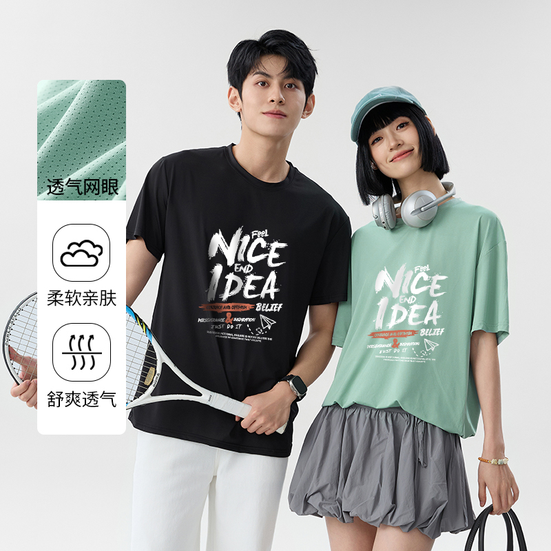 班尼路S&K冰丝网眼男士短袖夏季美式速干T恤男生运动跑步上衣潮A