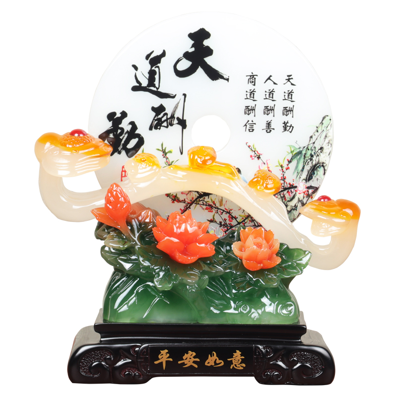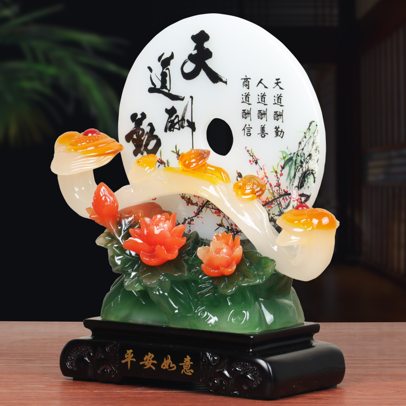 高档平安如意玉扣天道酬勤摆件纯手工玄关客厅电视柜办公室装饰