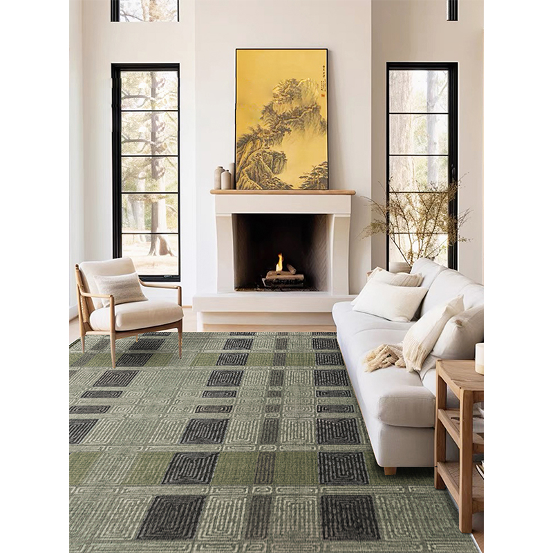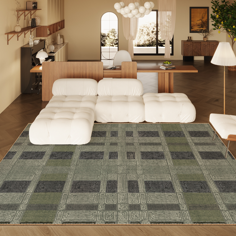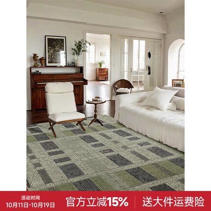 法式中古风客厅沙发地毯绿色耐脏卧室床边毯家用茶几垫摩洛哥复古