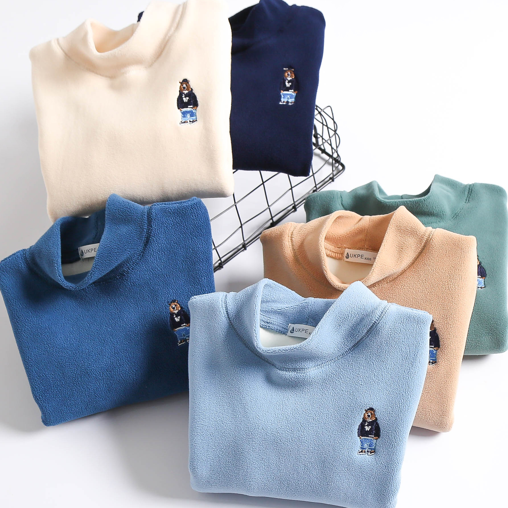 男童双面绒长袖T恤儿童半高领打底衫中领卫衣冬季新款居家服保暖