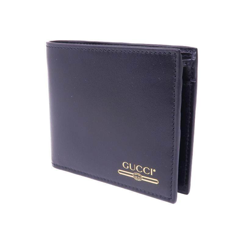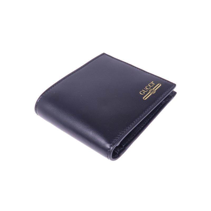 中古Gucci古驰男S级99新Bi-fold wallet双折钱包牛皮短钱包黑色