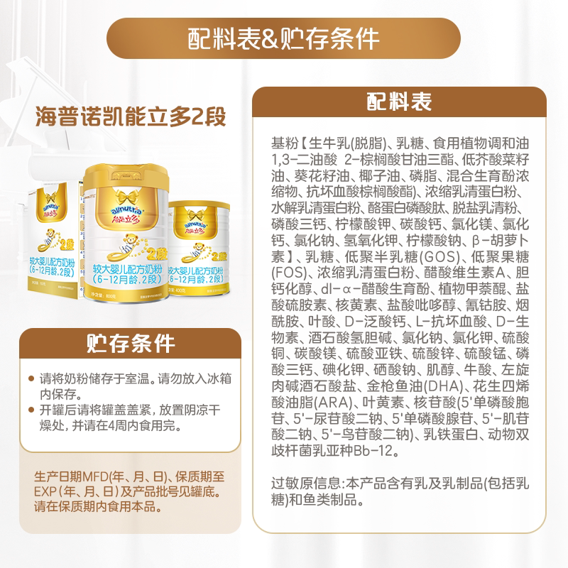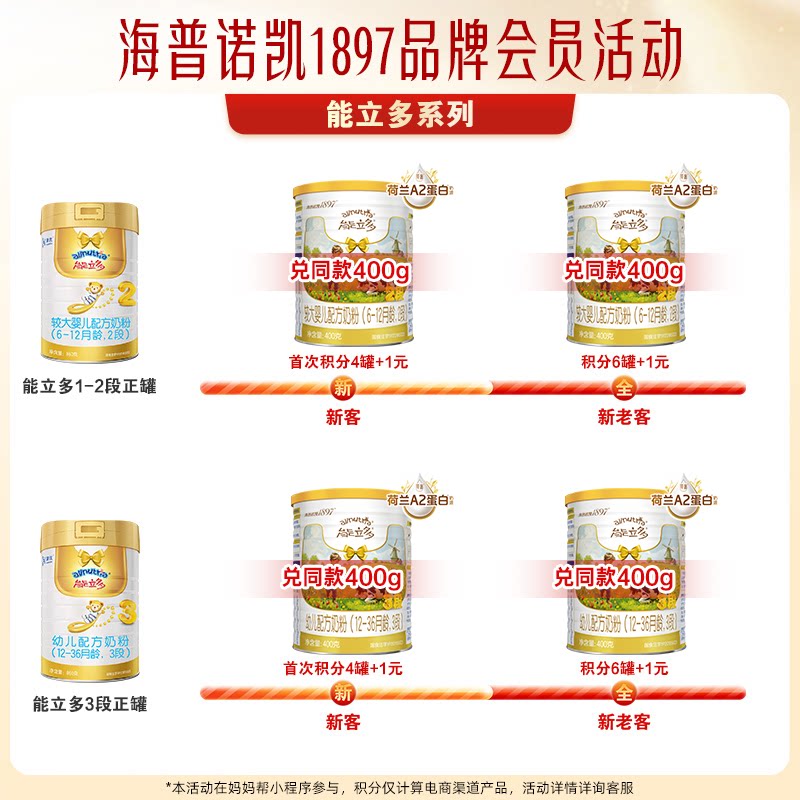 能立多(能力多)较大婴儿配方牛奶粉2段(6-12个月)400g*1罐